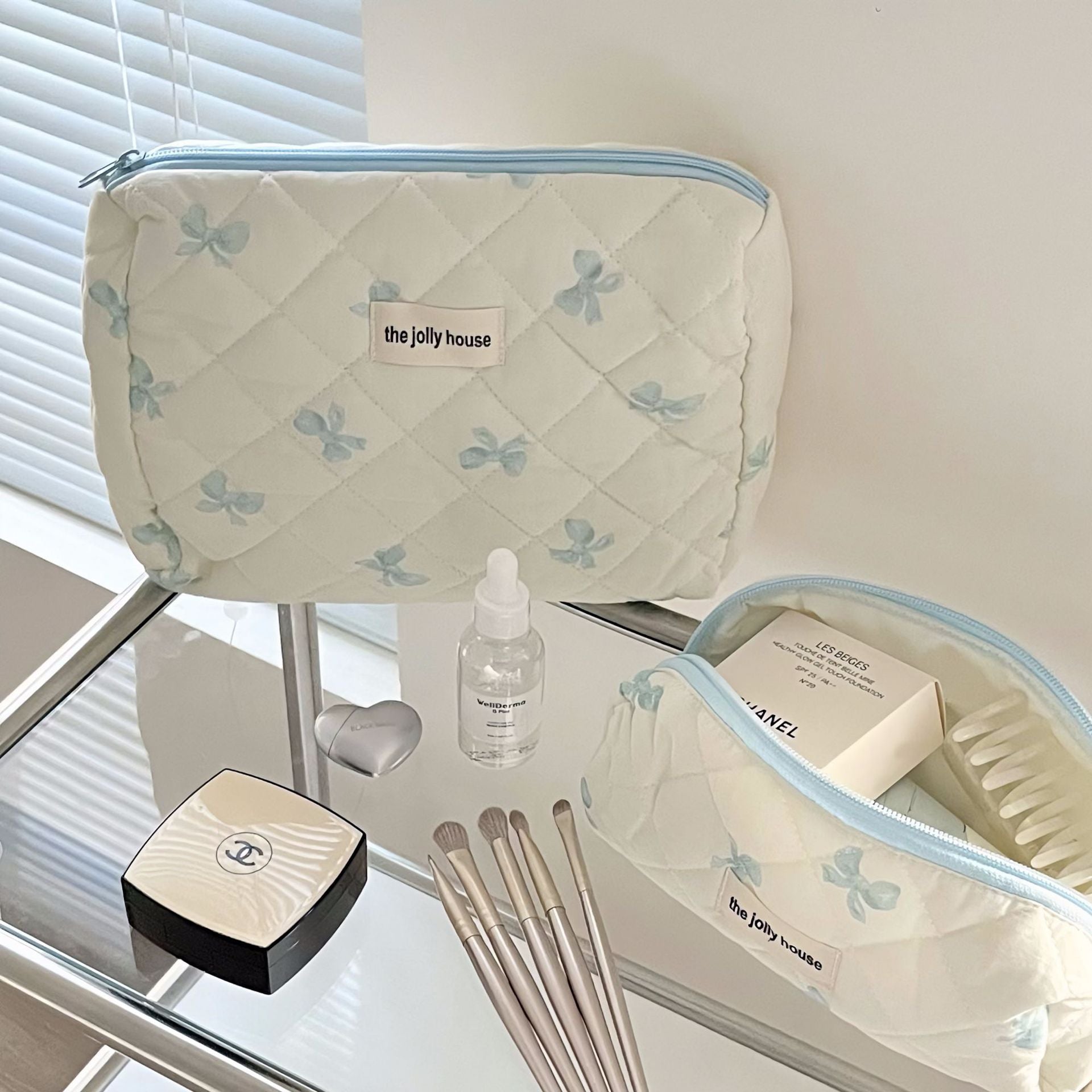 Keep it cute and tidy! π This large makeup bag is perfect for dorms, travel, or daily glam essentials.