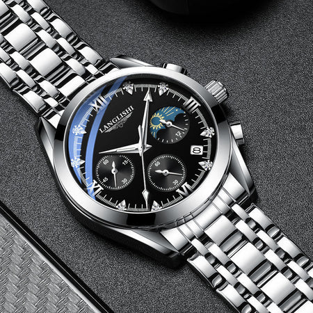 INSTOCK-LONGLIS Men's Leather Watch & Waterproof, Luminous,