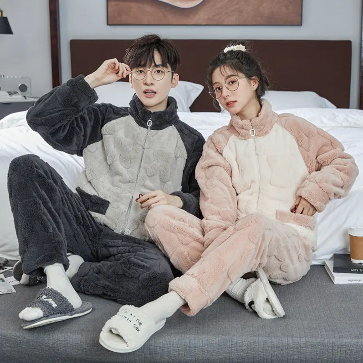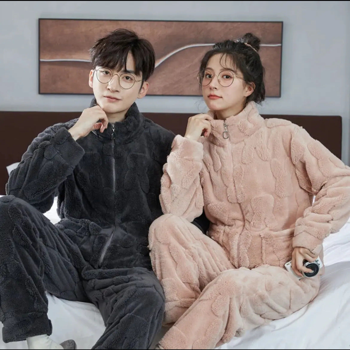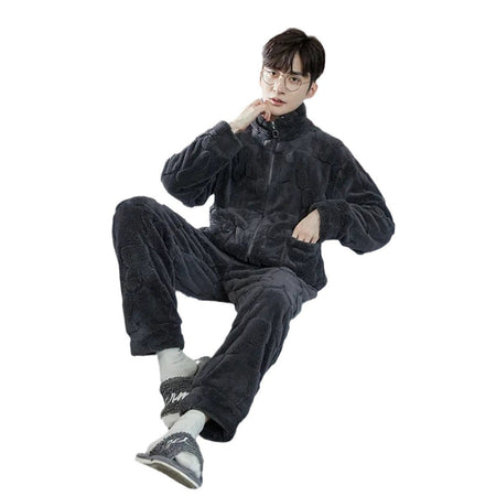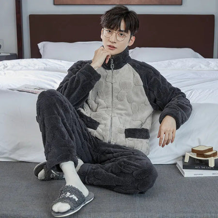 INSTOCK-Men’s Coral Fleece Loungewear – Thick Zipper Set
