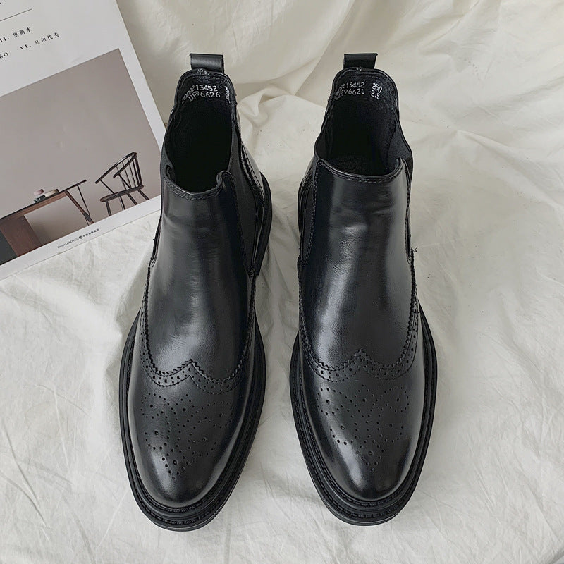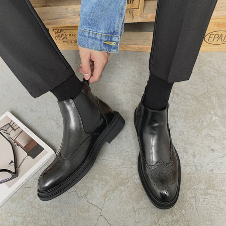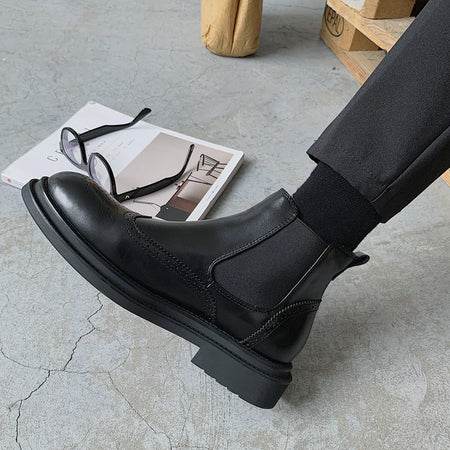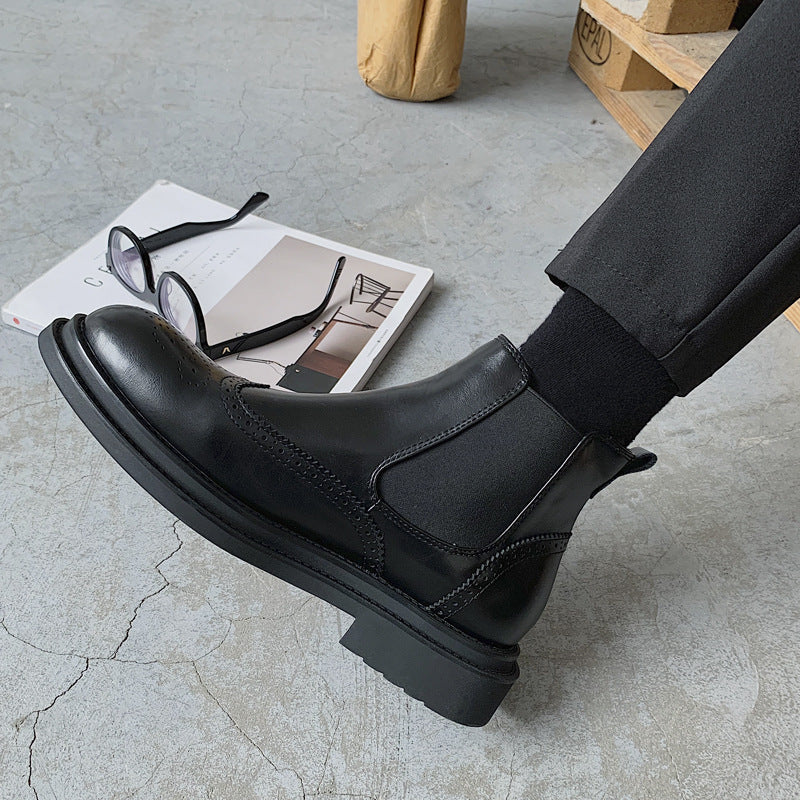 Step up your fashion game with these sleek black high-top Chelsea boots for men π’π€. Inspired by classic Martin boots with a modern twist, they offer the perfect blend of bold design, comfort, and versatility for spring and beyond.
