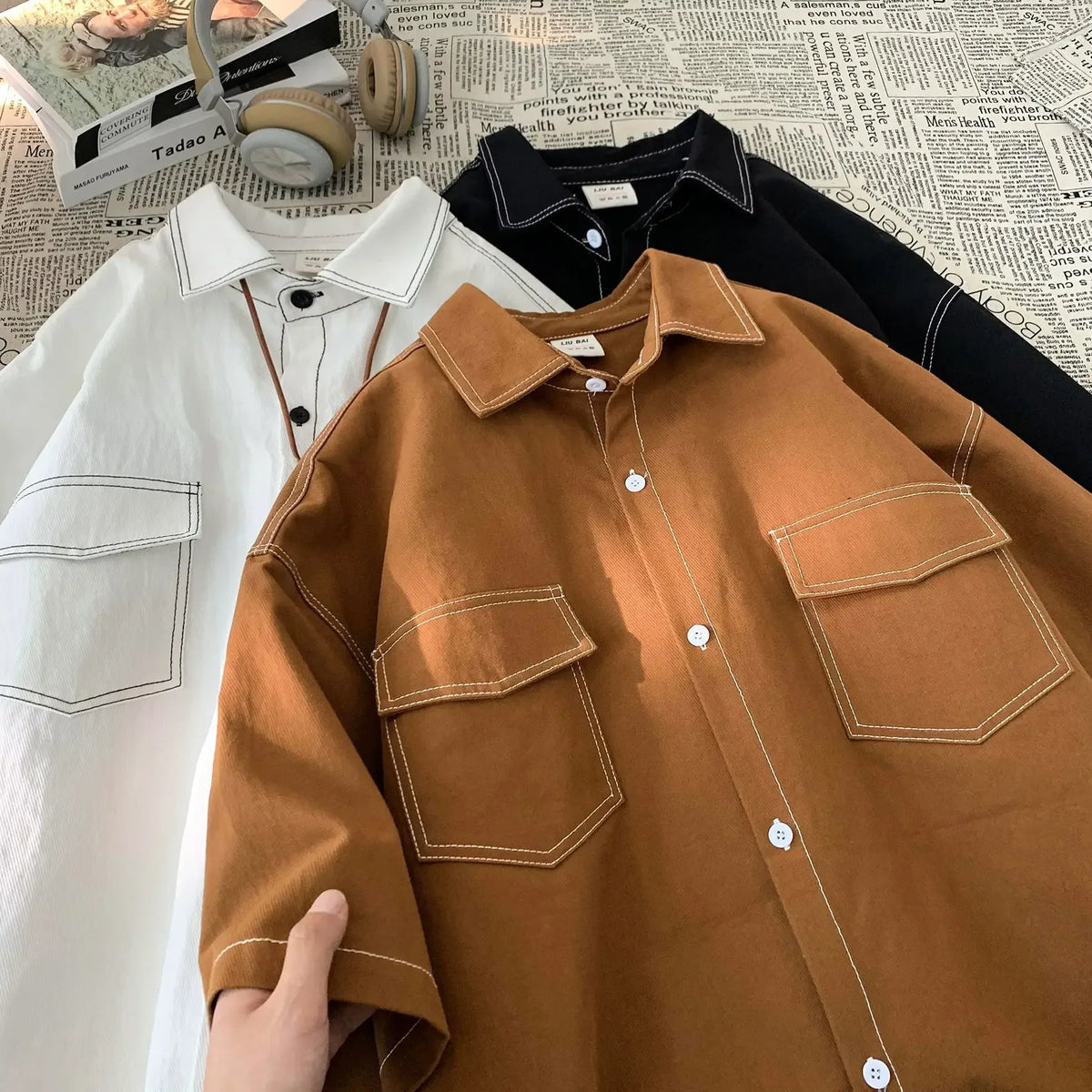 INSTOCK-Men’s Japanese Style Retro Short Sleeve Shirt – Trendy