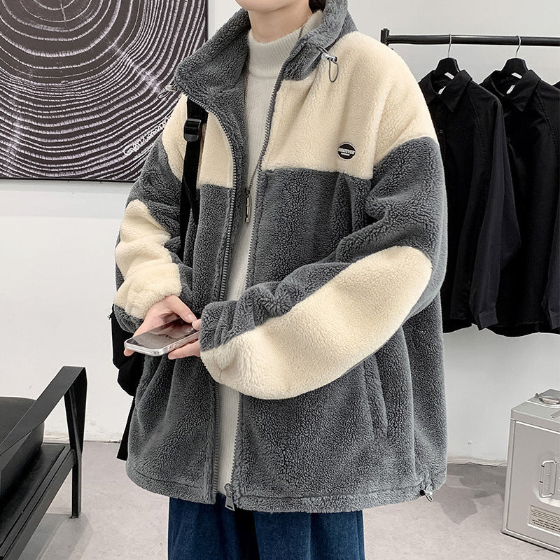 INSTOCK-Men’s Lamb Wool Contrast Stitch Fleece Jacket