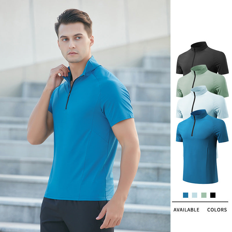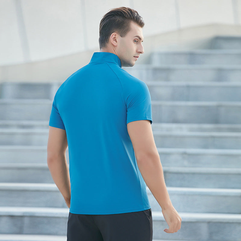 INSTOCK-Men’s Quick-Dry Stand Collar Half-Zip Sports T-Shirt