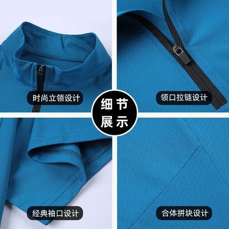 Made with advanced quick-dry fabric 🌬️, it wicks away sweat 💦 and dries rapidly, ensuring you stay fresh during intense workouts or everyday activities. The stand collar with a half zipper allows adjustable ventilation for extra comfort and a stylish sporty look 👕.