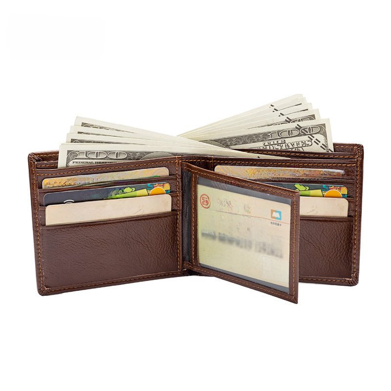 INSTOCK- Men’s Retro Cowhide Wallet - Multi-Card & Silver Short