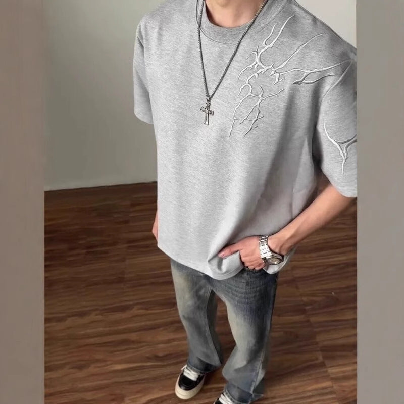 INSTOCK- Men’s Thorn Embroidered Heavy Shoulder T-Shirt - Summer