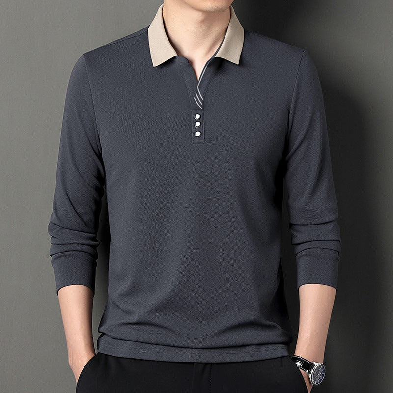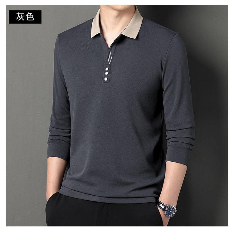 INSTOCK- Menβs Waffle Jacquard Long Sleeve Polo T-Shirt Autumn