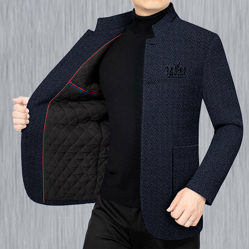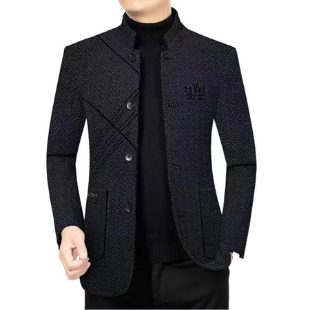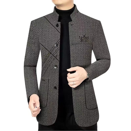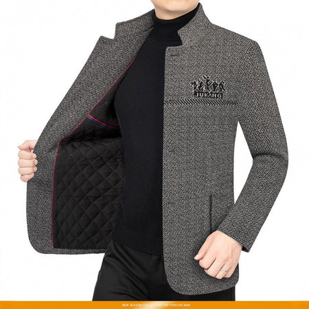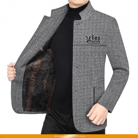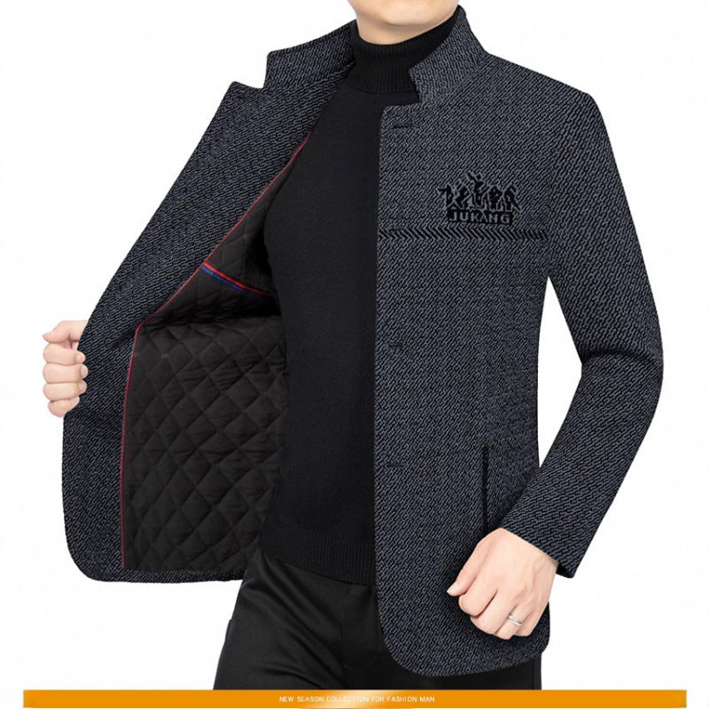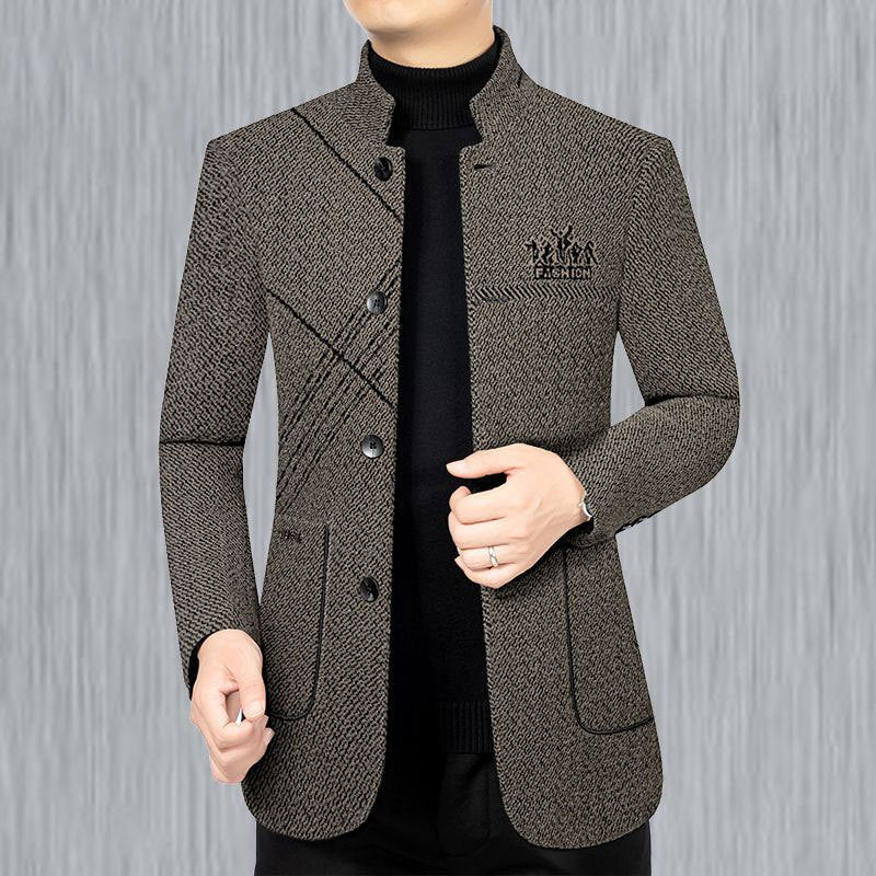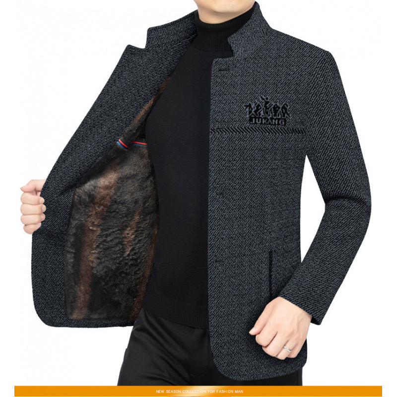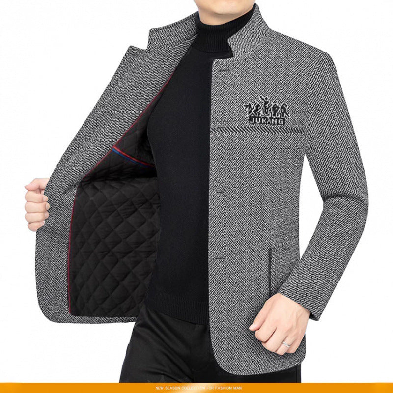 INSTOCK-Men’s Woolen Coat – Middle-Aged Stand Collar Padded Dad