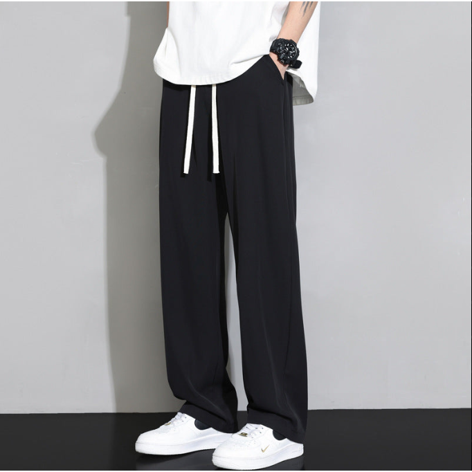 üåû Cool and comfy‚Äîthese ice silk casual pants are perfect for summer! With their thin fabric and straight fit, they offer both style and breathability. The mid-rise waistband and drawstring closure provide a customizable fit, while the smooth fabric keeps you fresh. Whether you're on a casual outing or just relaxing, these pants are ideal for everyday wear. Available in black, dark gray, and khaki. Stay stylish and comfy all season! üåü