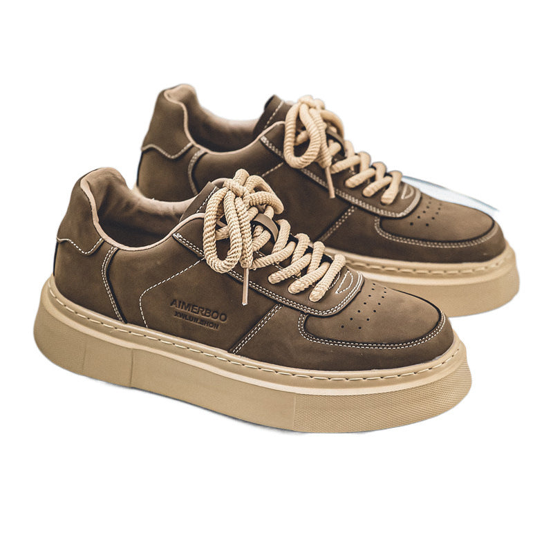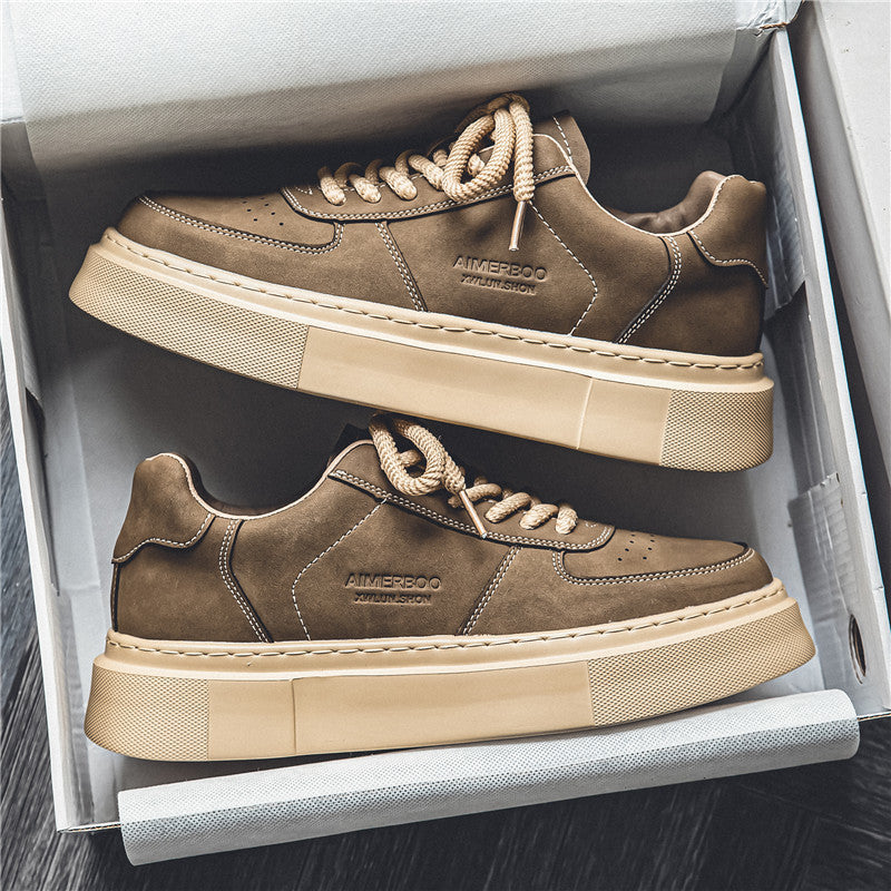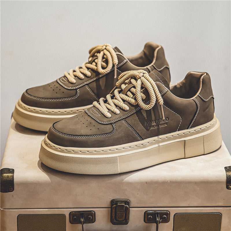 INSTOCK-Men's Retro Leather Sneakers – Thick Sole, Height Boost
