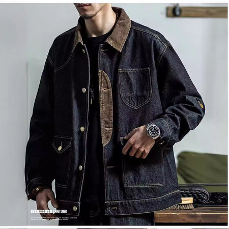 INSTOCK-Men's Retro Patchwork Denim Hunting Jacket