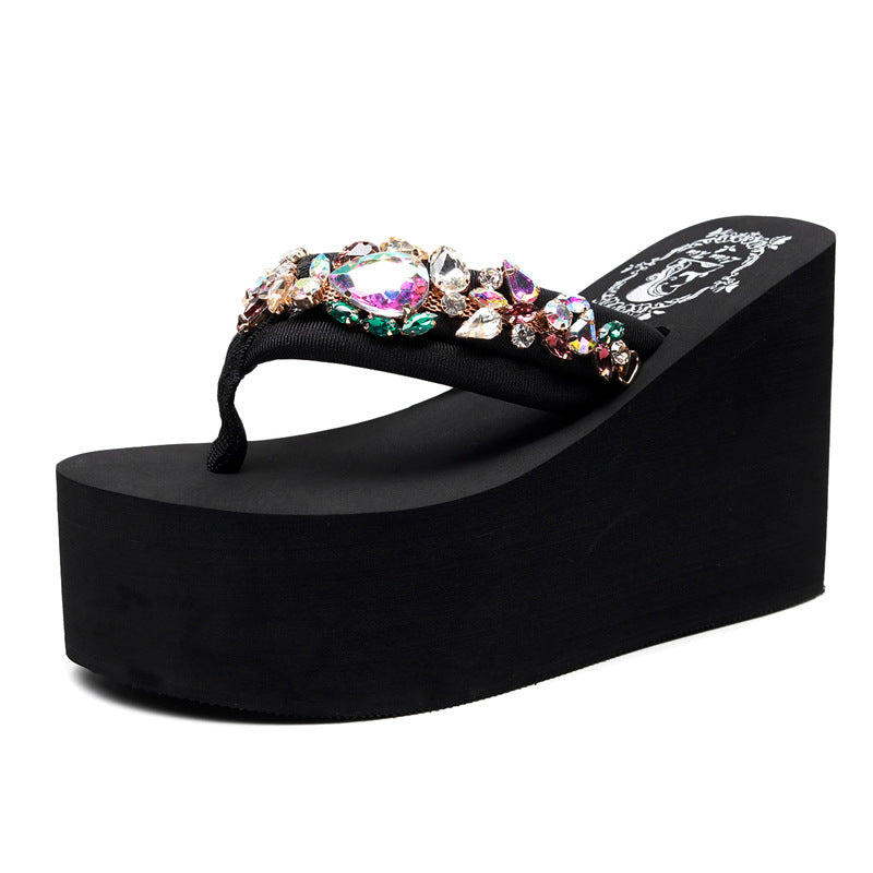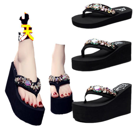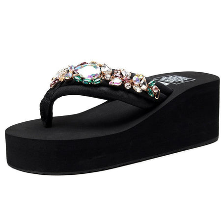 INSTOCK - Plus Size Rhinestone Wedge Flip-Flops β Beach Sandals
