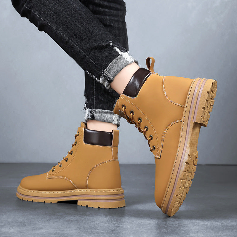 The Popular Martin Boots for Men are here to take your fashion game to the next level! Perfect for autumn, these boots combine durability, comfort, and style. Made with artificial PU for the upper and a rubber sole, these boots are designed to handle any weather while keeping you comfy all day. Whether you're out for a casual stroll or heading to a night out, the round toe, flat heel, and waterproof, non-slip features ensure you stay stylish and steady. Available in Yellow, Khaki, Green, and Black, with both regular and velvet options to match your vibe!