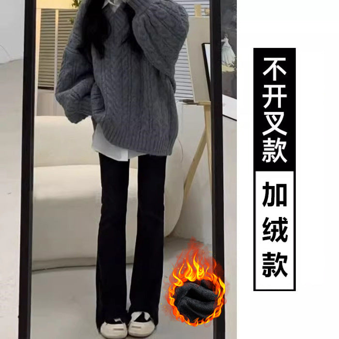 Black Fleece-Lined Maternity Pants. Designed for pregnant women, these slim, micro-flared horseshoe pants combine sporty comfort with a flattering silhouette.