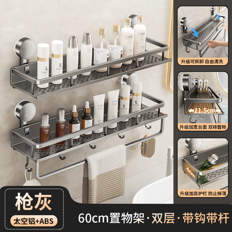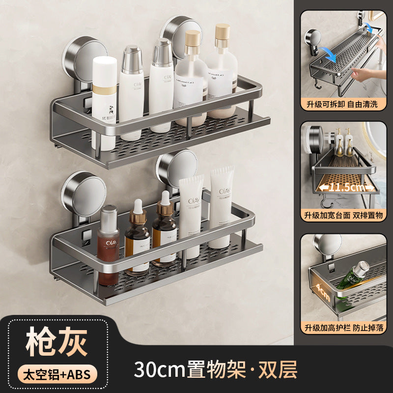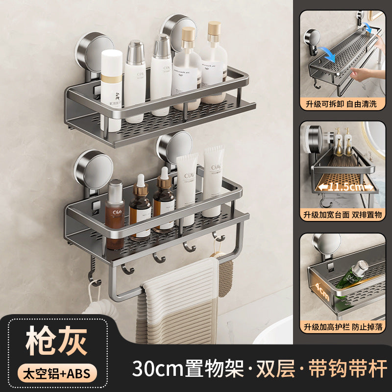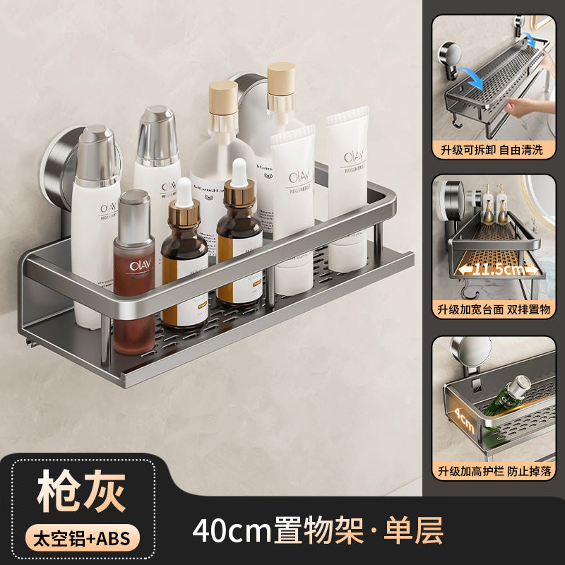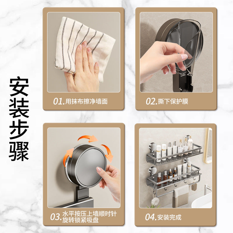 Declutter your washroom with this wall-mounted suction cup toilet storage rack — perfect for holding toilet paper, soap, brushes, or even extra toiletries right by your washstand.