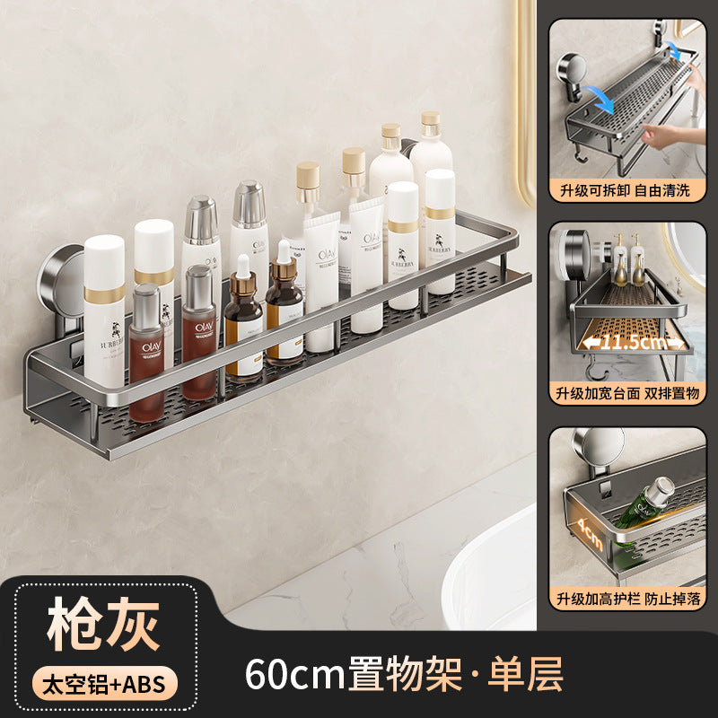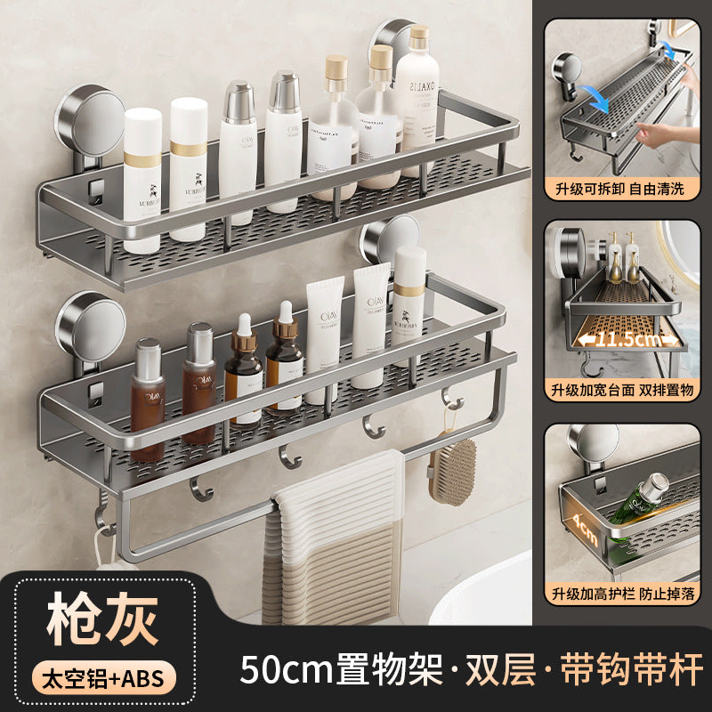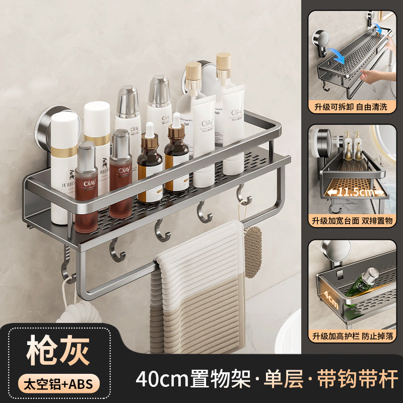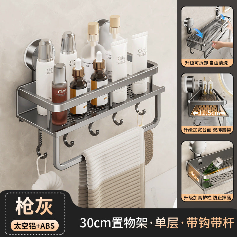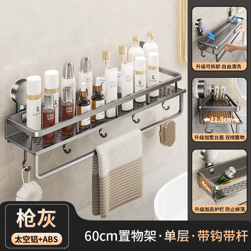 Declutter your washroom with this wall-mounted suction cup toilet storage rack — perfect for holding toilet paper, soap, brushes, or even extra toiletries right by your washstand.