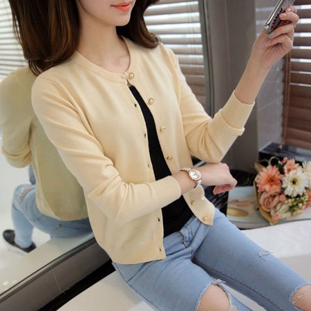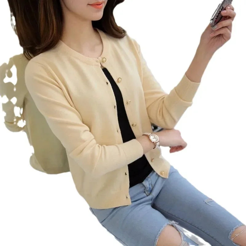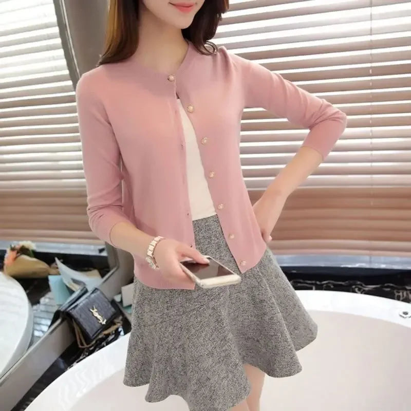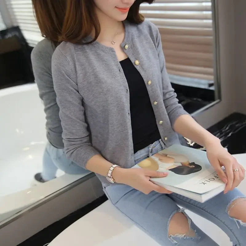 ๐ Need a lightweight cover-up? This slim-fit round-neck cardigan is your daily go-to! Simple yet stylish, perfect for layering in spring and autumn.