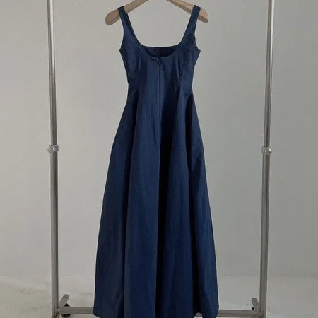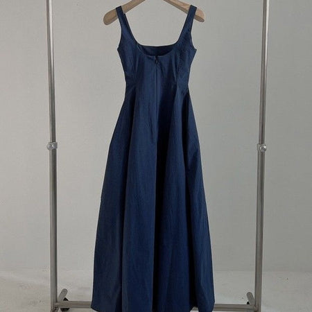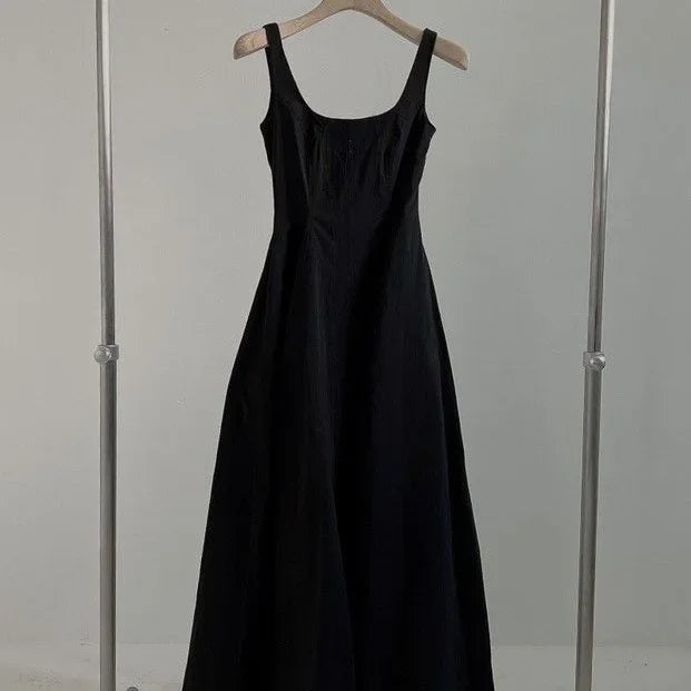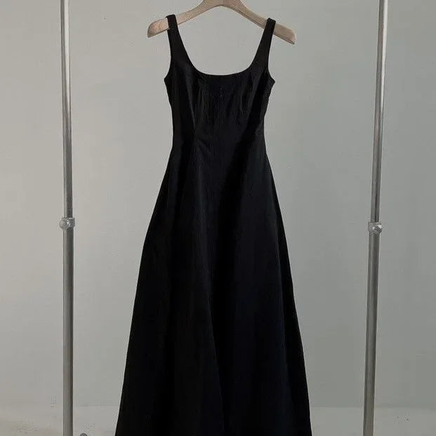 INSTOCK-Slim Korean Sleeveless Midi Dress – Elegant Style