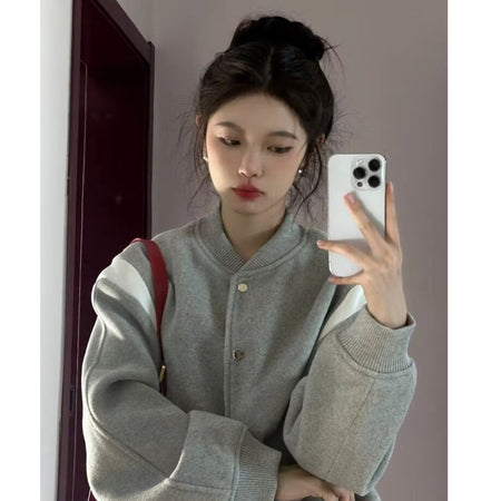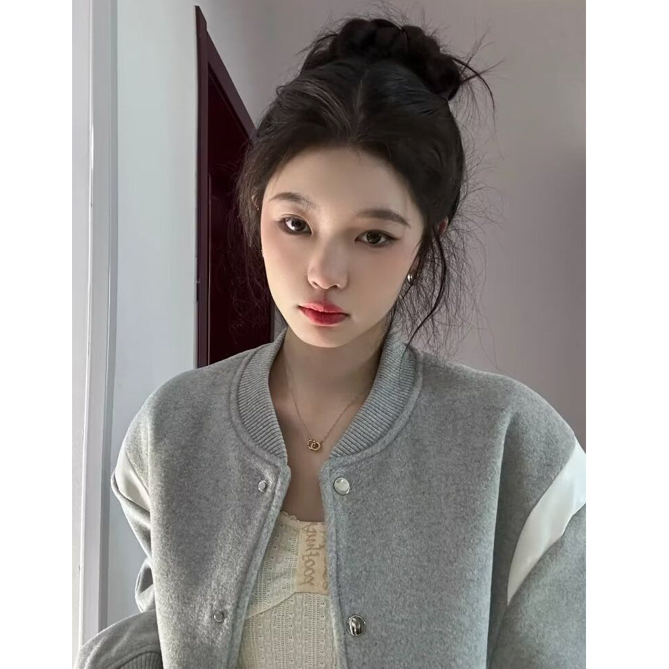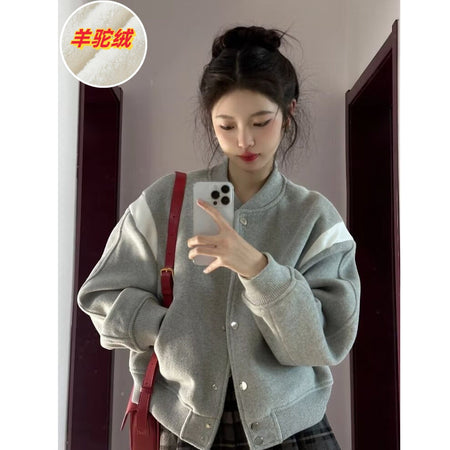 INSTOCK-Women’s French Baseball Jacket Fleece-Lined Short