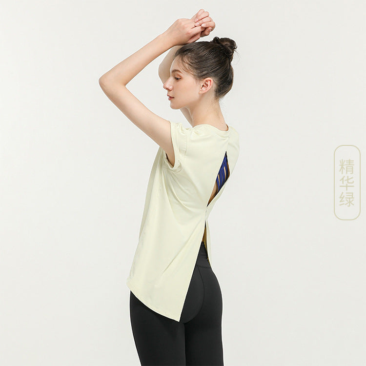 Designed for movement and flexibility, it pairs perfectly with leggings or joggers for a sporty and trendy look. Whether you're flowing through yoga poses, hitting the track, or just out for a walk, this summer yoga top offers all-day comfort and a flattering fit 🌿.