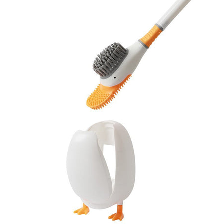 Equipped with a flexible, soft wool head, it reaches deep into corners and under rims with no dead angles 🧽🔄. The long ergonomic handle keeps your hands away from the mess, while the cute yellow duck adds charm and personality to your bathroom 🛁💛.