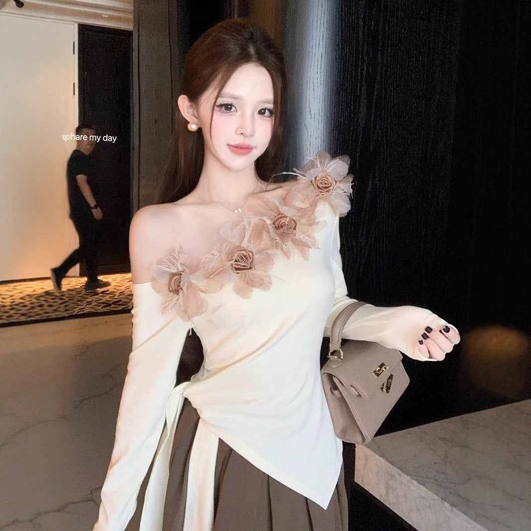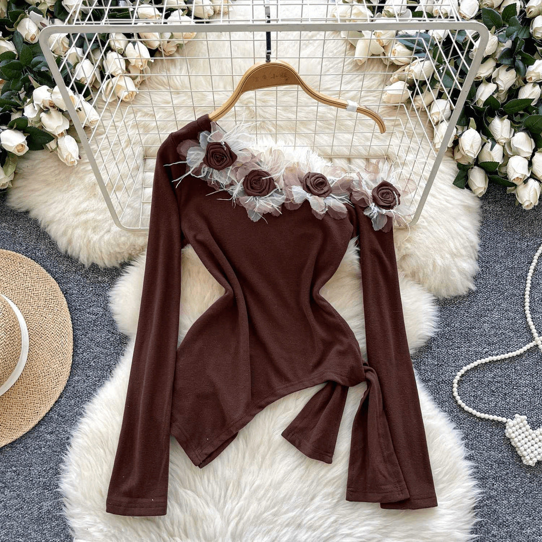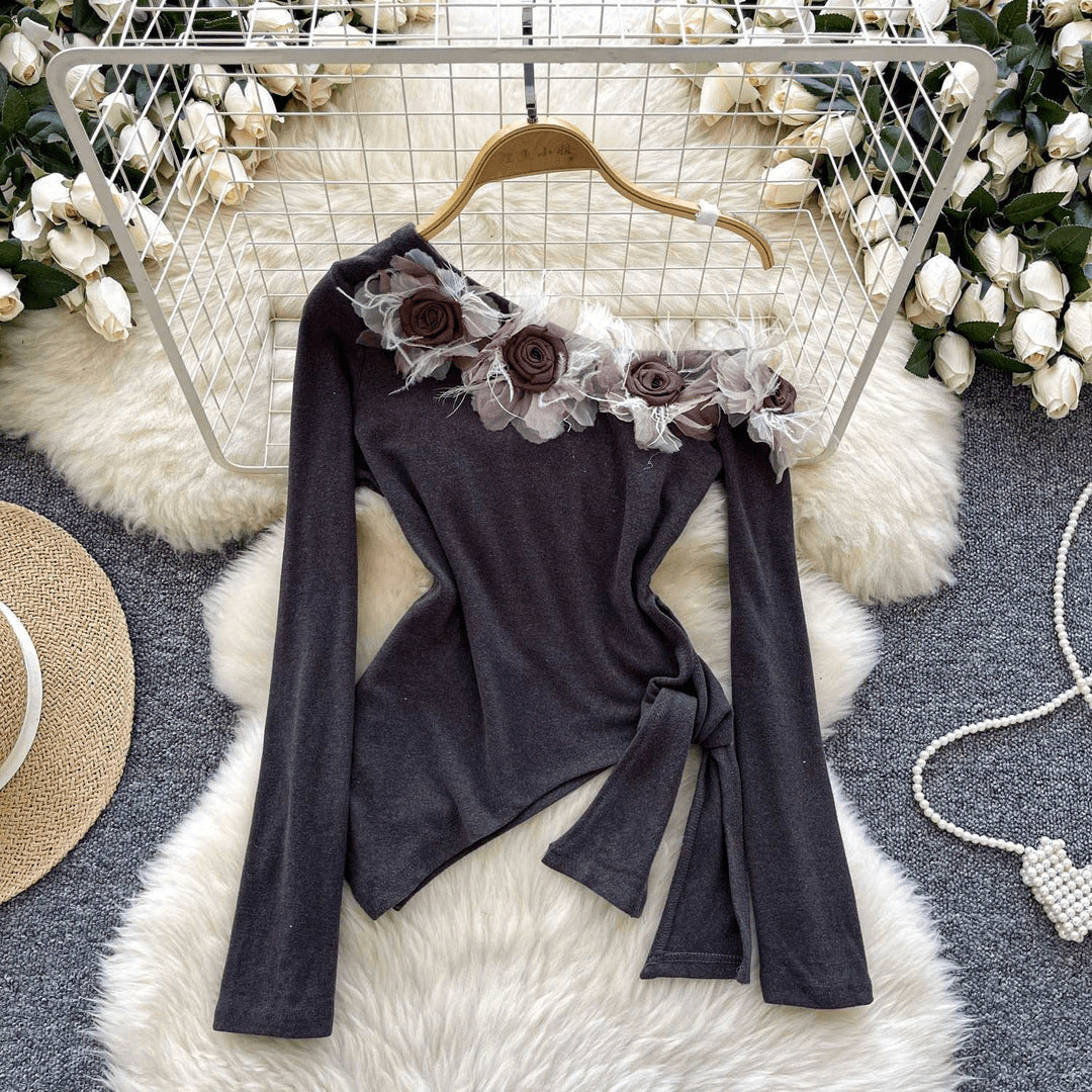 Feel dreamy and daring in this floral open-shoulder stunner πΈ. With a unique slanted collar and flower accent, this piece blends elegance with a pure, flirty vibe β¨.