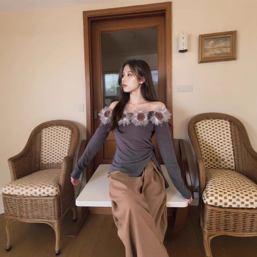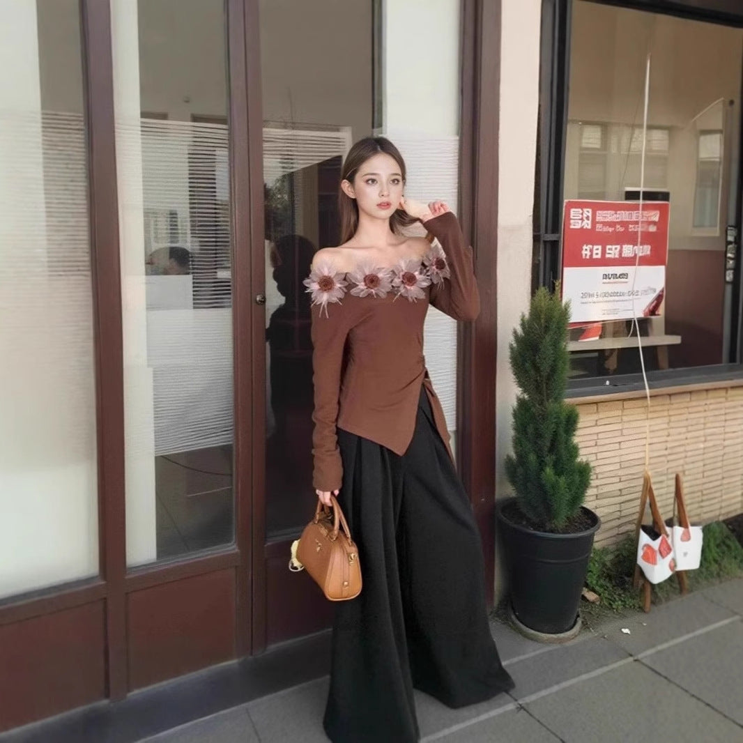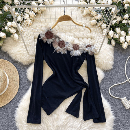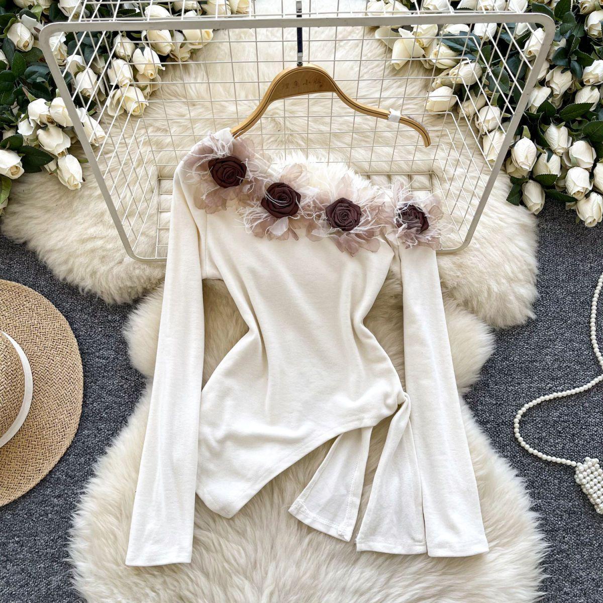 Feel dreamy and daring in this floral open-shoulder stunner πΈ. With a unique slanted collar and flower accent, this piece blends elegance with a pure, flirty vibe β¨.