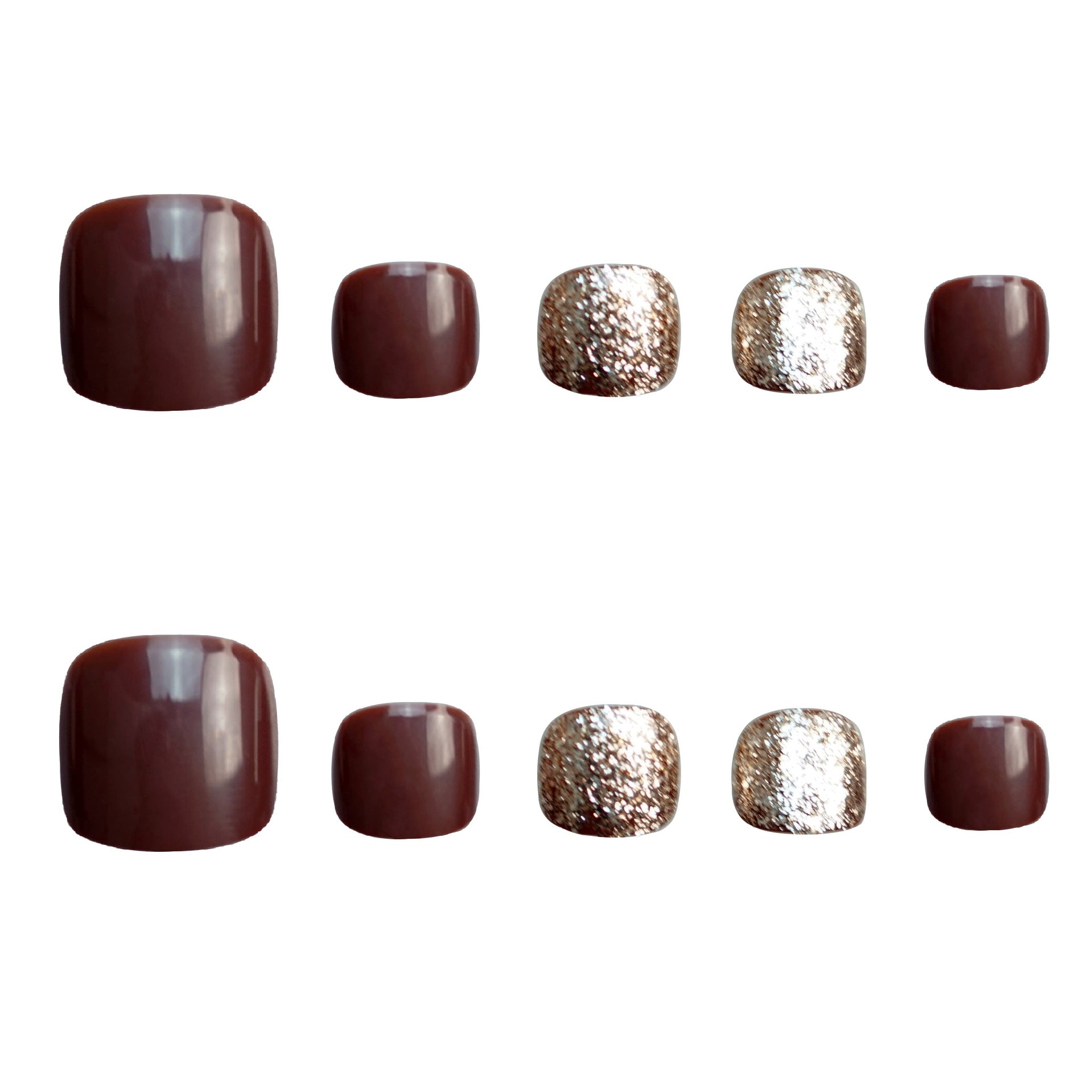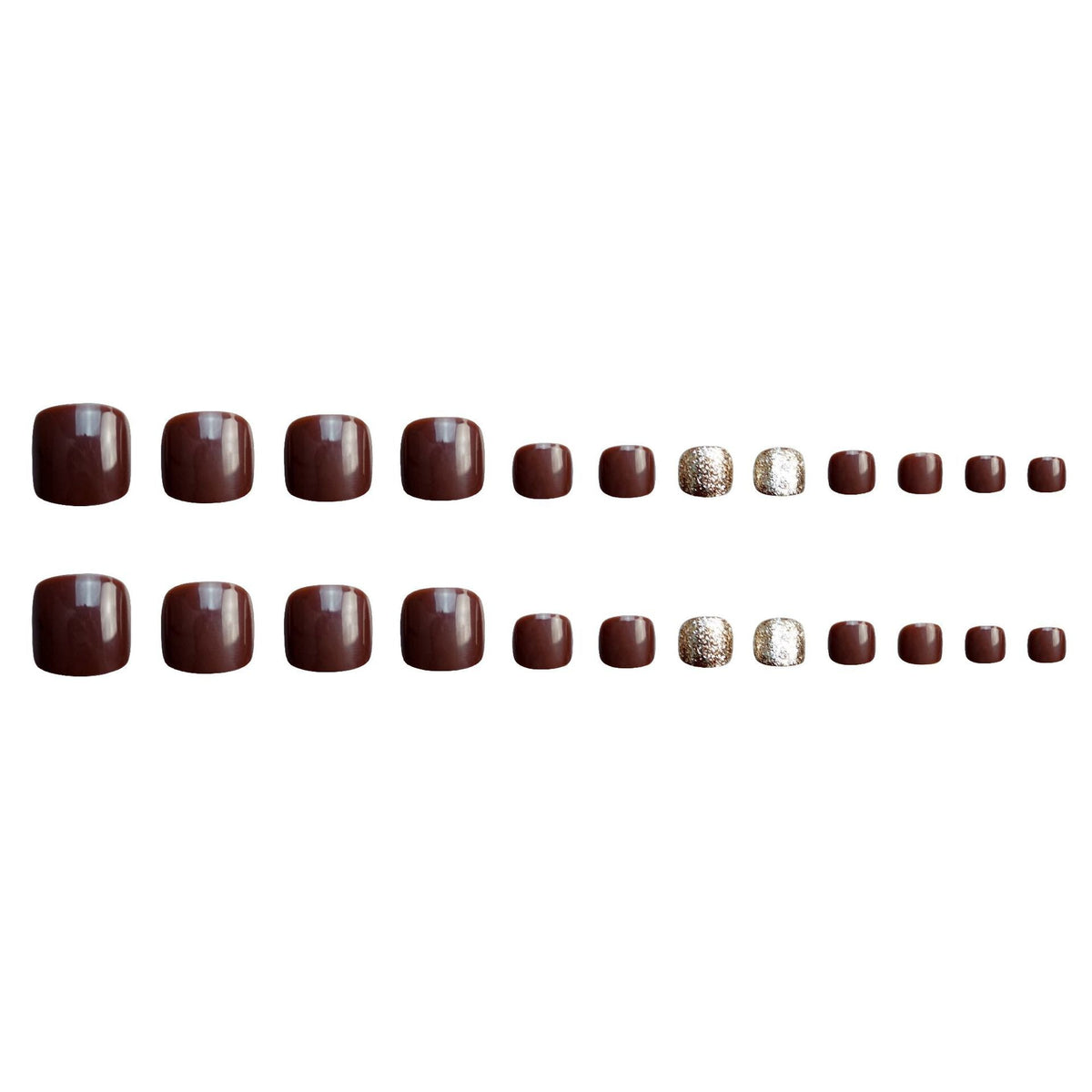 Featuring a chic chocolate and curry gold color palette, these ready-to-wear nail stickers are perfect for adding a touch of glamour to your pedicure. Each toenail slice is beautifully coated with a glossy finish, offering an elegant, high-end look suitable for parties, holidays, or daily wear 💛🍫.