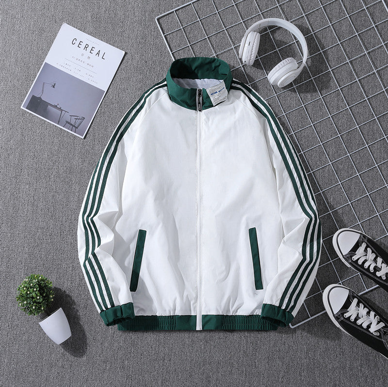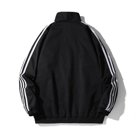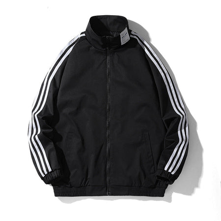 Embrace effortless style with this Korean-style casual sports jacket for men, designed with three-stripe detailing for a trendy, athletic vibe. Perfect for spring and autumn wear.