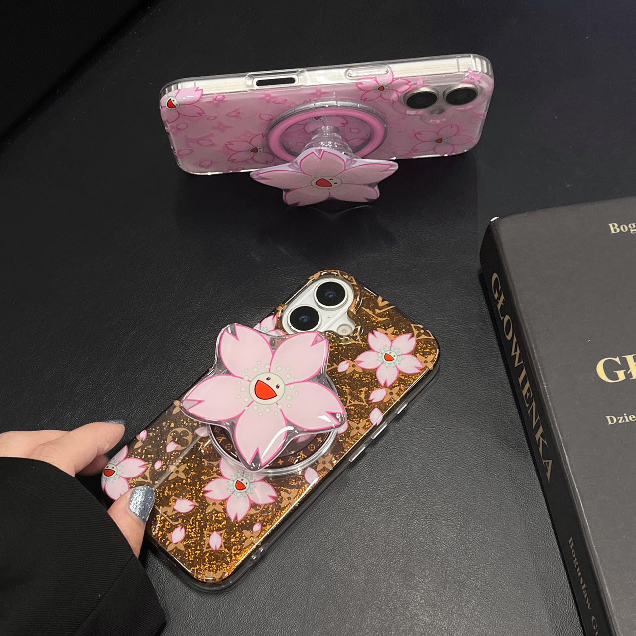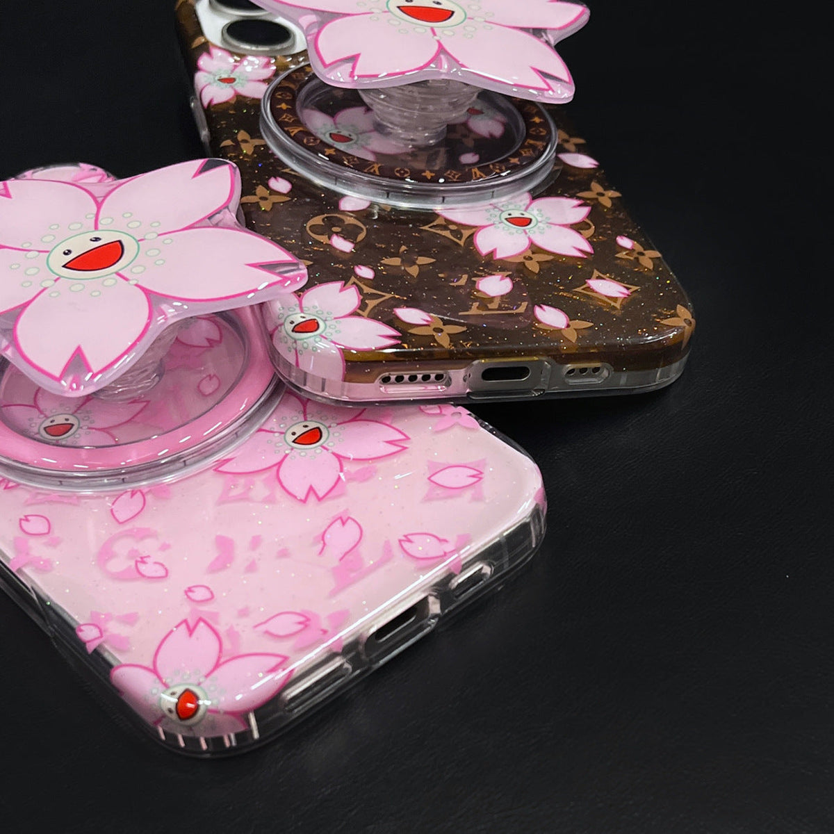 The Japanese & Korean Flower Magnetic Holder case for iPhone 14–16 Pro Max blends beauty with utility.