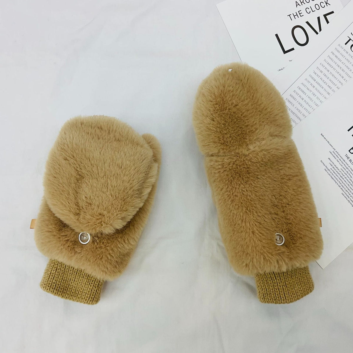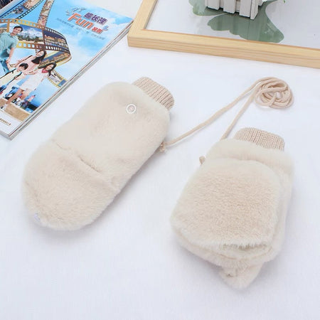 Stay cozy and stylish this winter with these Japanese cute plush gloves featuring imitation rabbit plush material. Designed as halterneck mittens with finger coverage, they provide excellent warmth and comfort for women during cold weather.
