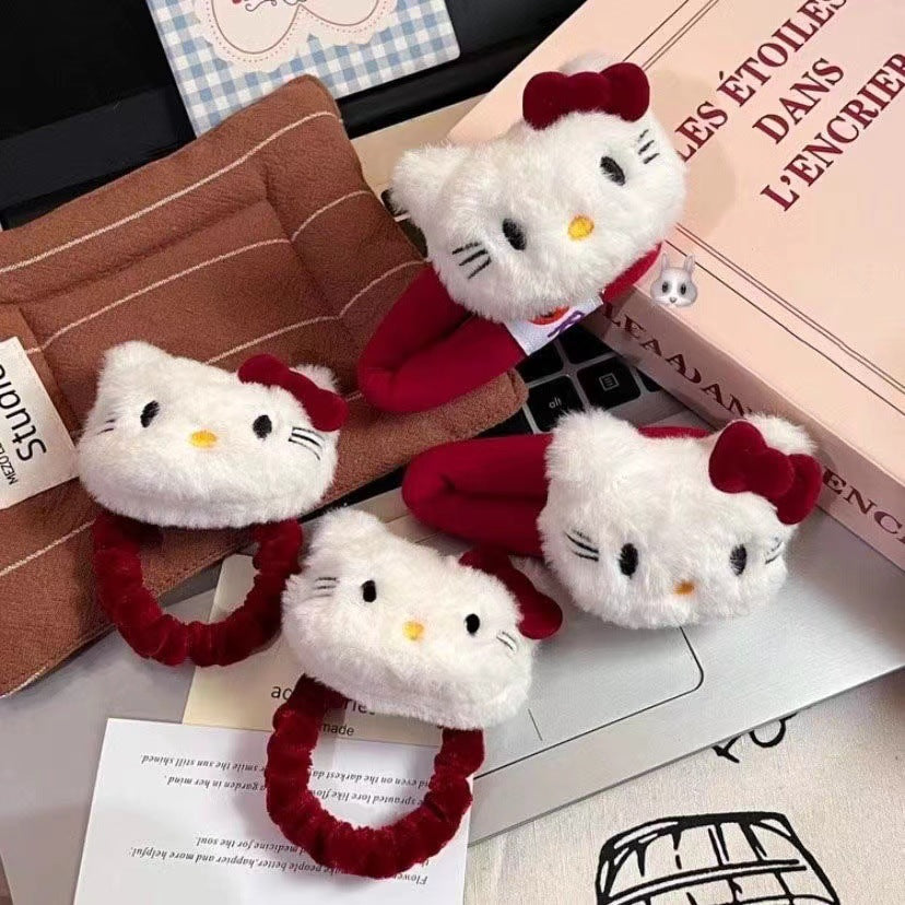 Cute Plush Cat & Bear Hair Ring – Winter-Ready Headwear
