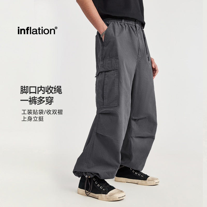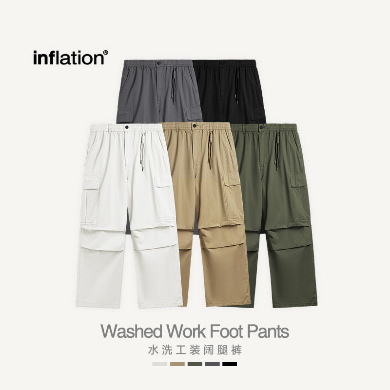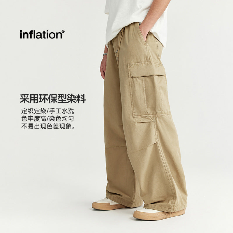 Washed Crane Cargo Pants Men’s Wide Leg Streetwear 2025
