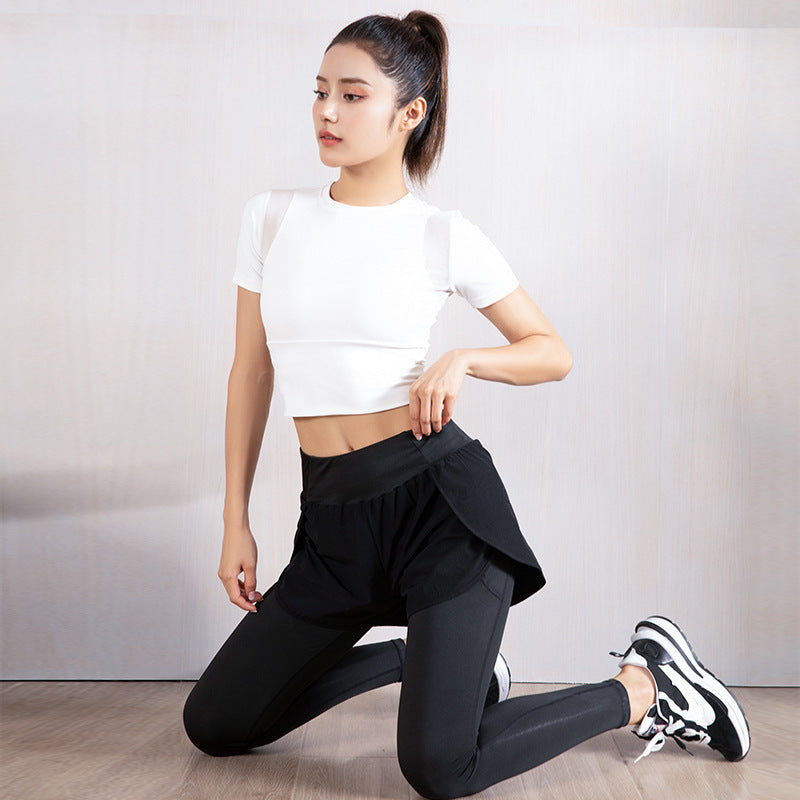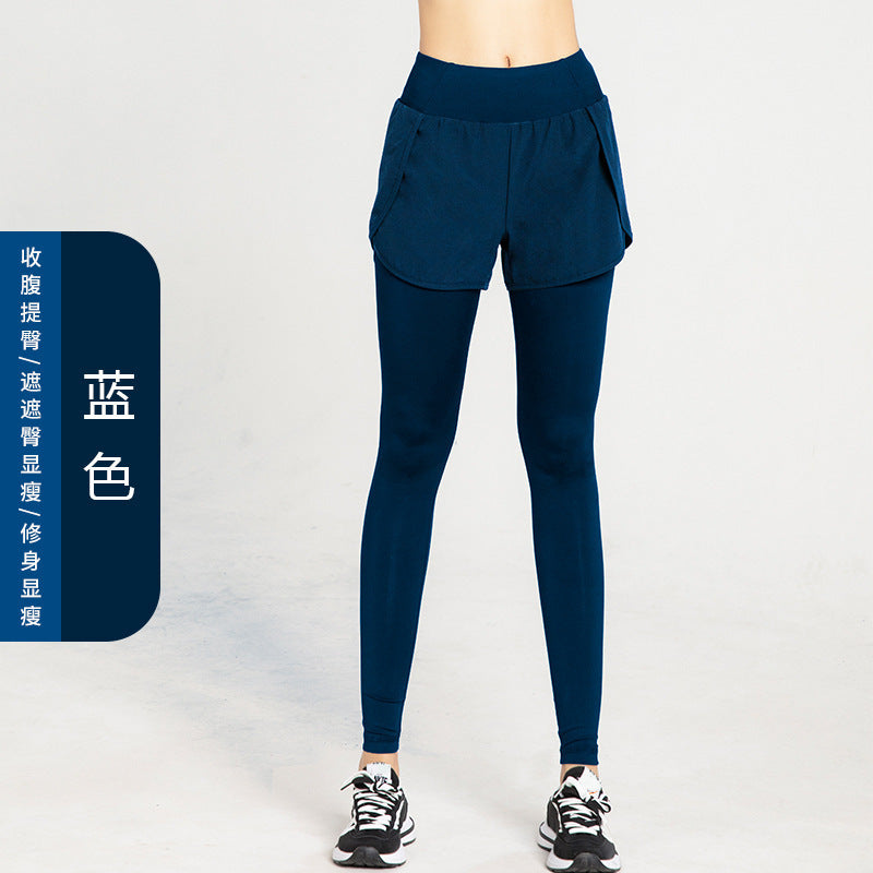 Pocketed Fake Two-Piece Yoga Pants – Hip-Lift Stretch Fit