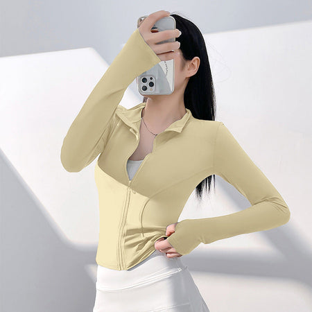 Protect your skin while staying stylish with the Sun Protection Yoga Jacket. Designed for outdoor workouts, this breathable sports top keeps you cool, covered, and comfortable.