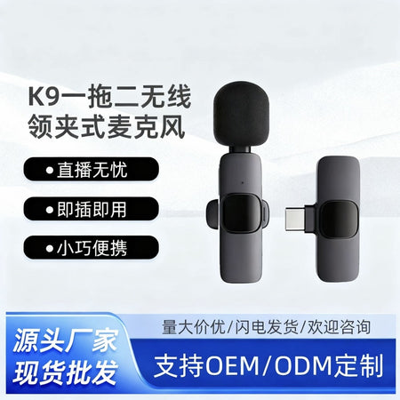 Ensure professional-quality audio with the Cross-Border K9 Wireless Lavalier Microphone, also compatible with K8 devices, designed for live streaming, video hosting, and mobile recording. Featuring one-to-two connectivity, noise reduction, and reverb control, this microphone is perfect for vloggers, broadcasters, and internet hosts who need clear and crisp audio anytime, anywhere. 🎤✨