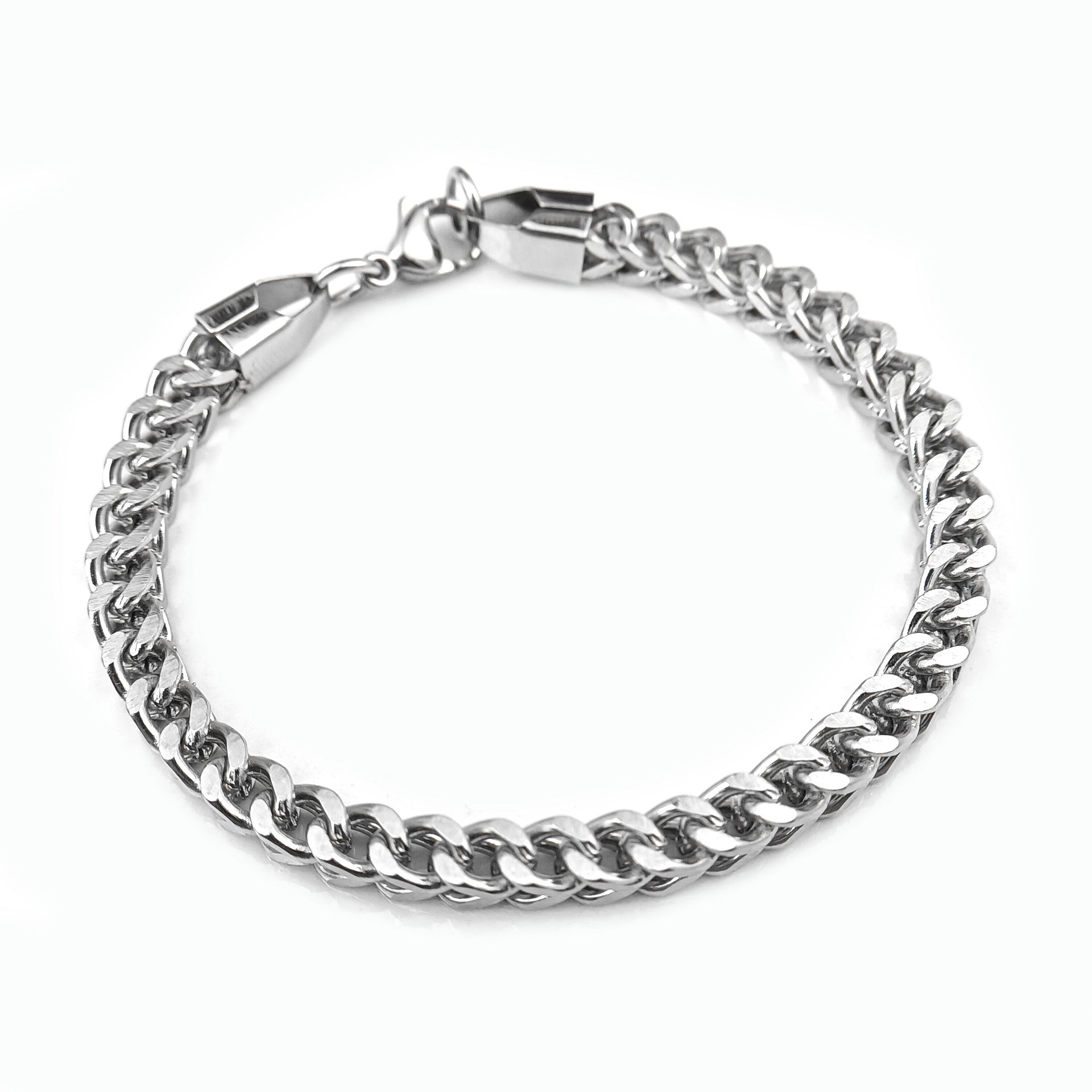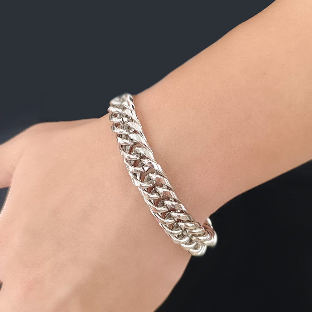 Crafted from premium stainless steel with a titanium finish, this bracelet is 100% non-fading, rust-proof, and skin-safe, built to last as long as your confidence. The woven metal pattern gives it a punk, mechanical edge – making it a top pick for hip-hop lovers, streetwear fans, and anyone who owns their attitude 🔧🔥