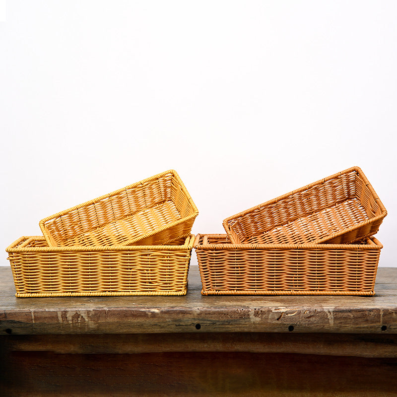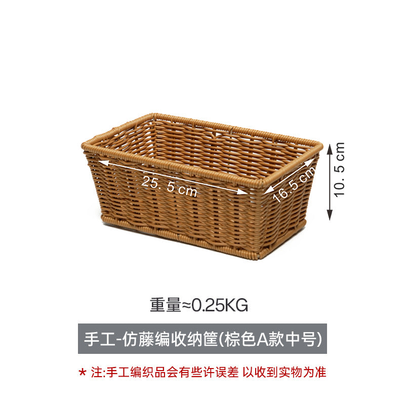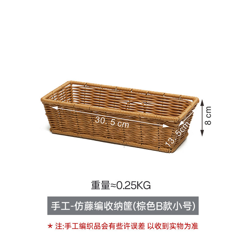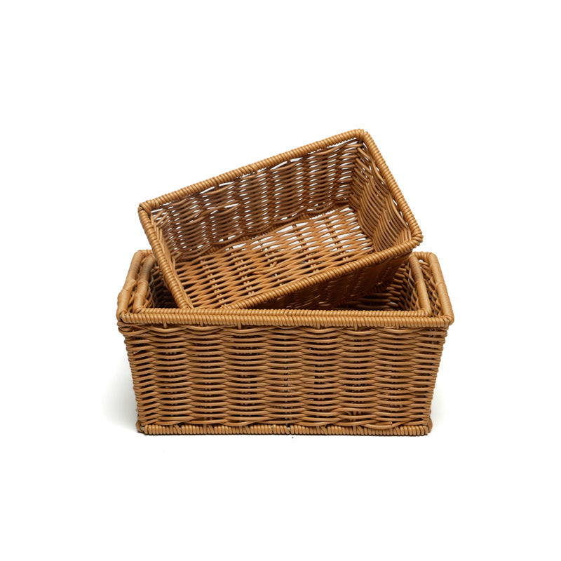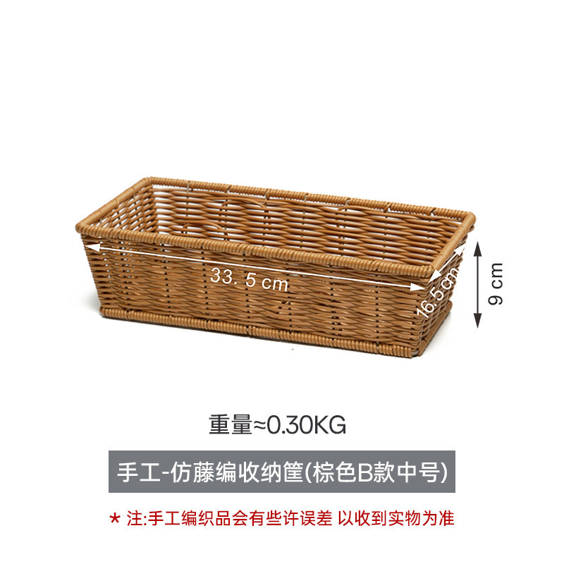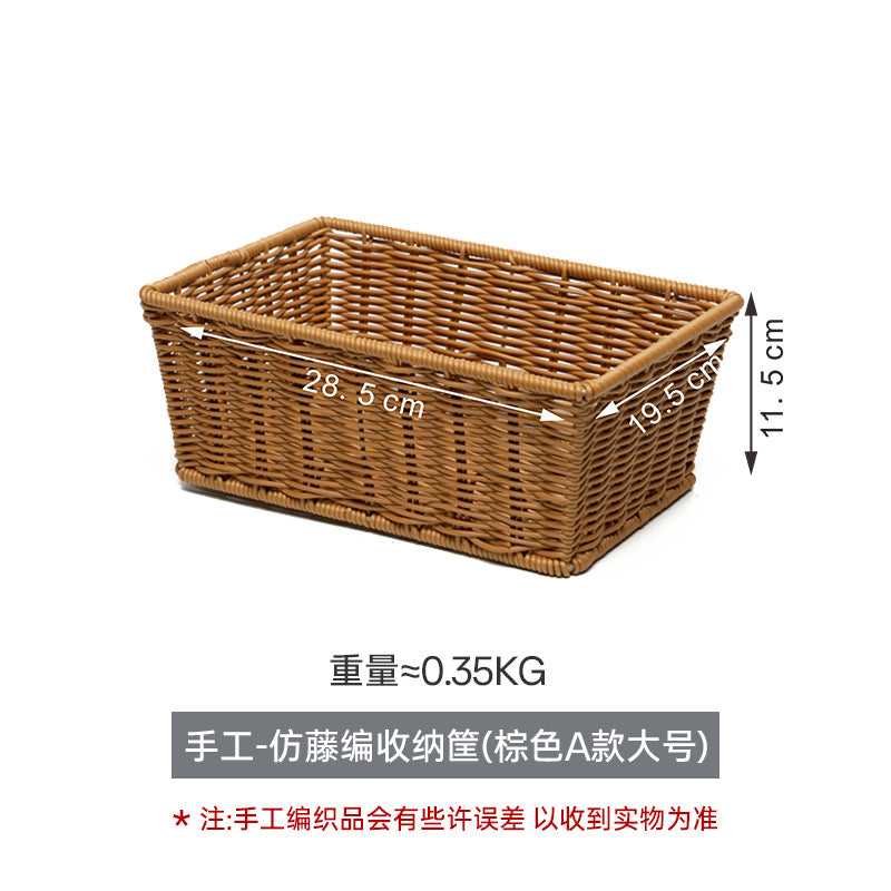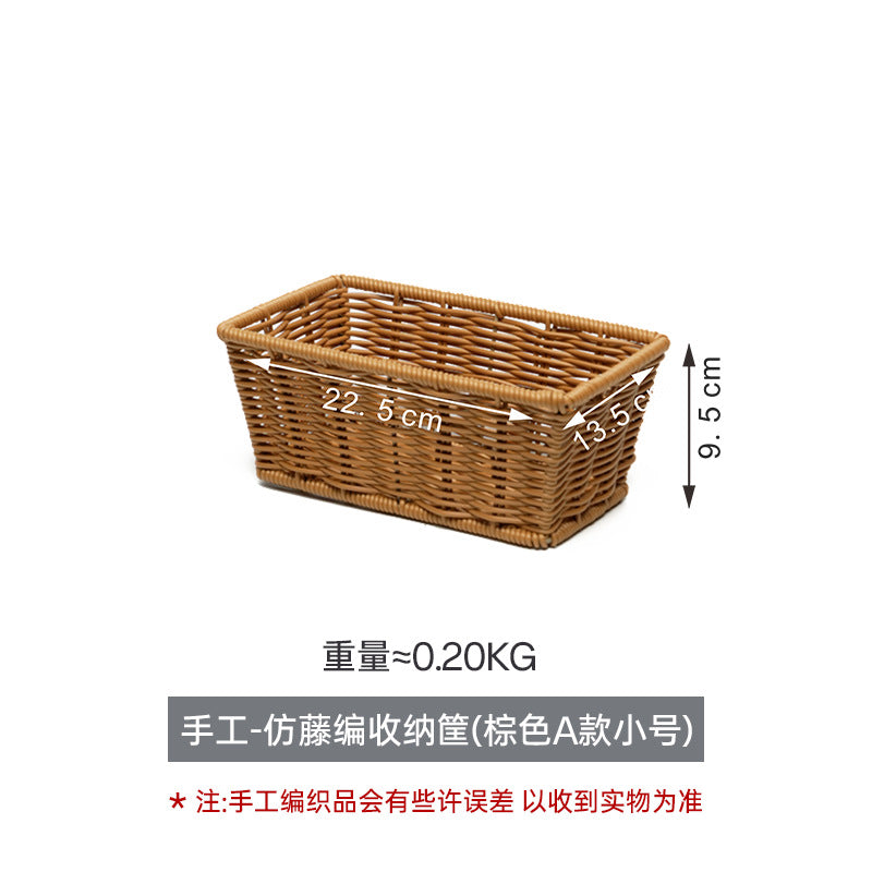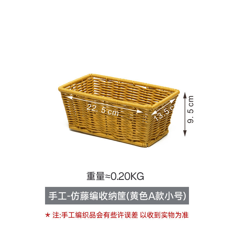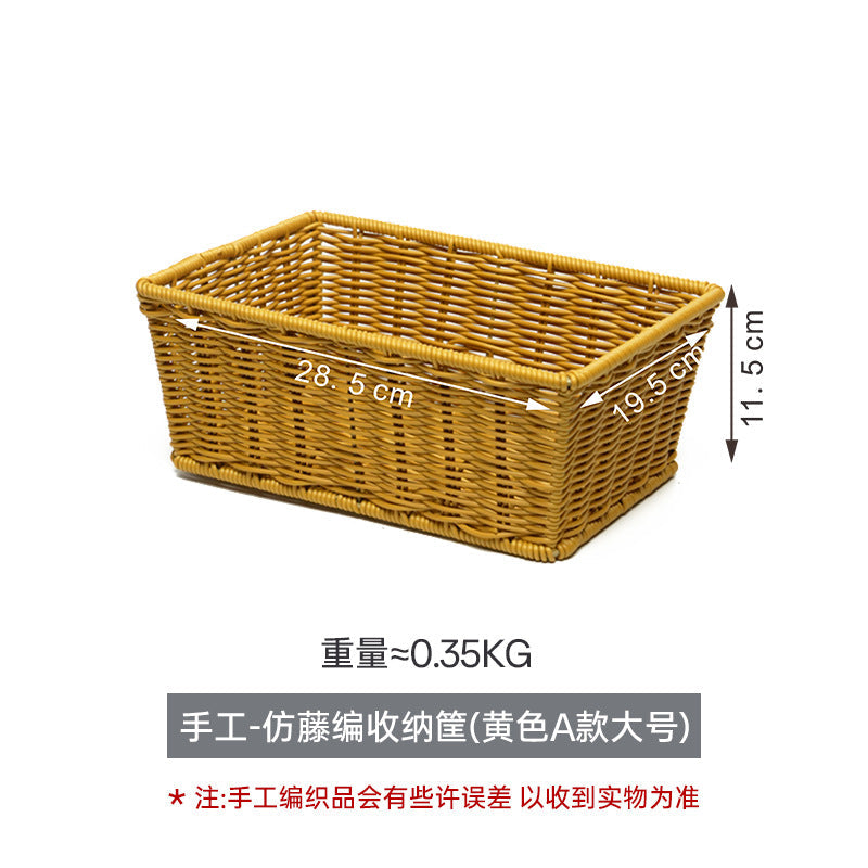 Rectangular Imitation Rattan Desktop Storage Basket