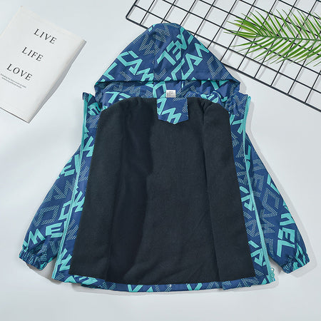 Kids’ Boys Velvet Hooded Windproof Jacket Spring & Fall