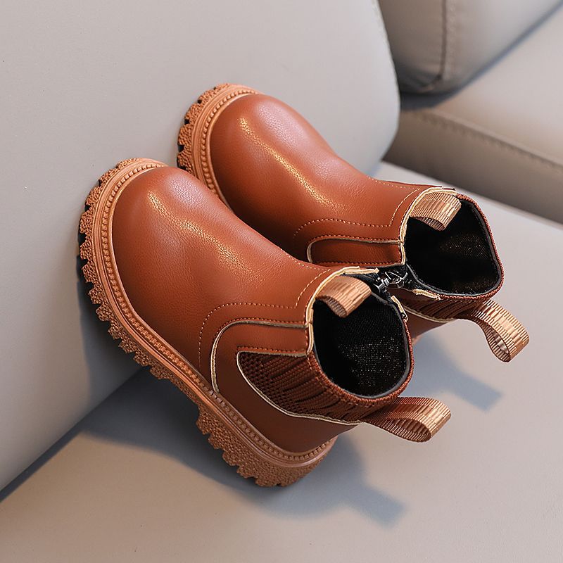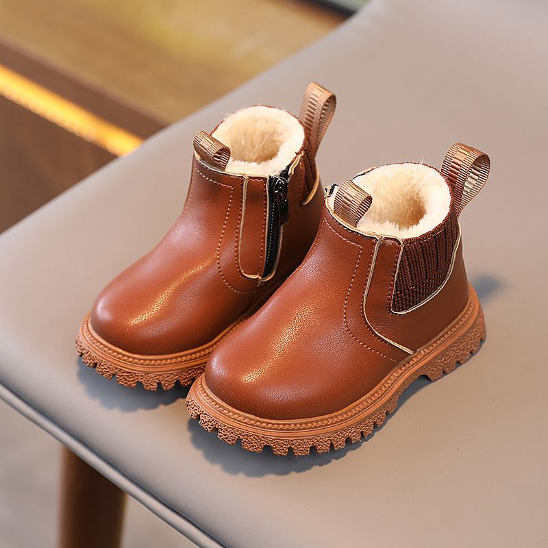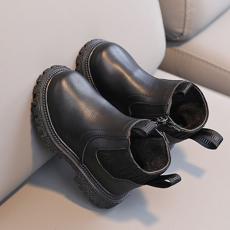 Kids British Style Leather Winter Boots Soft Sole