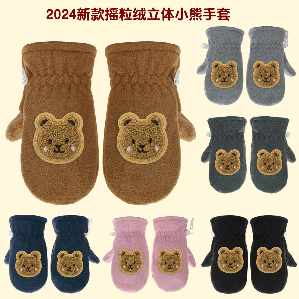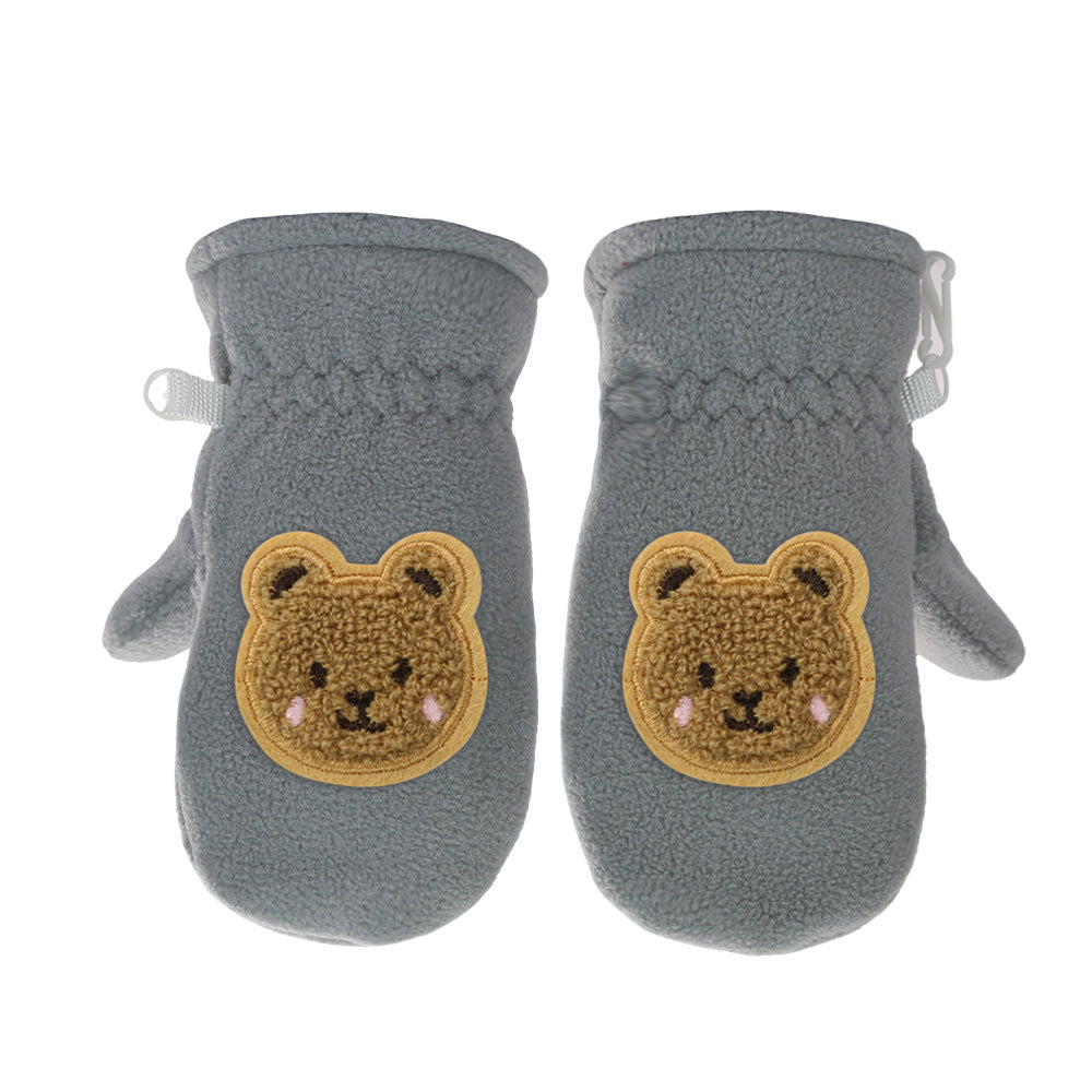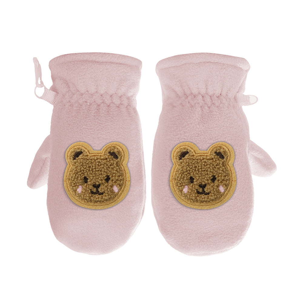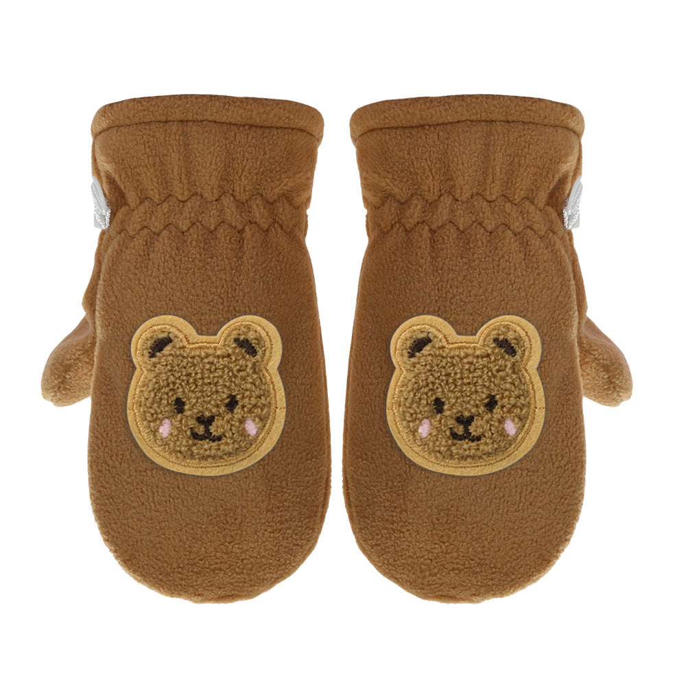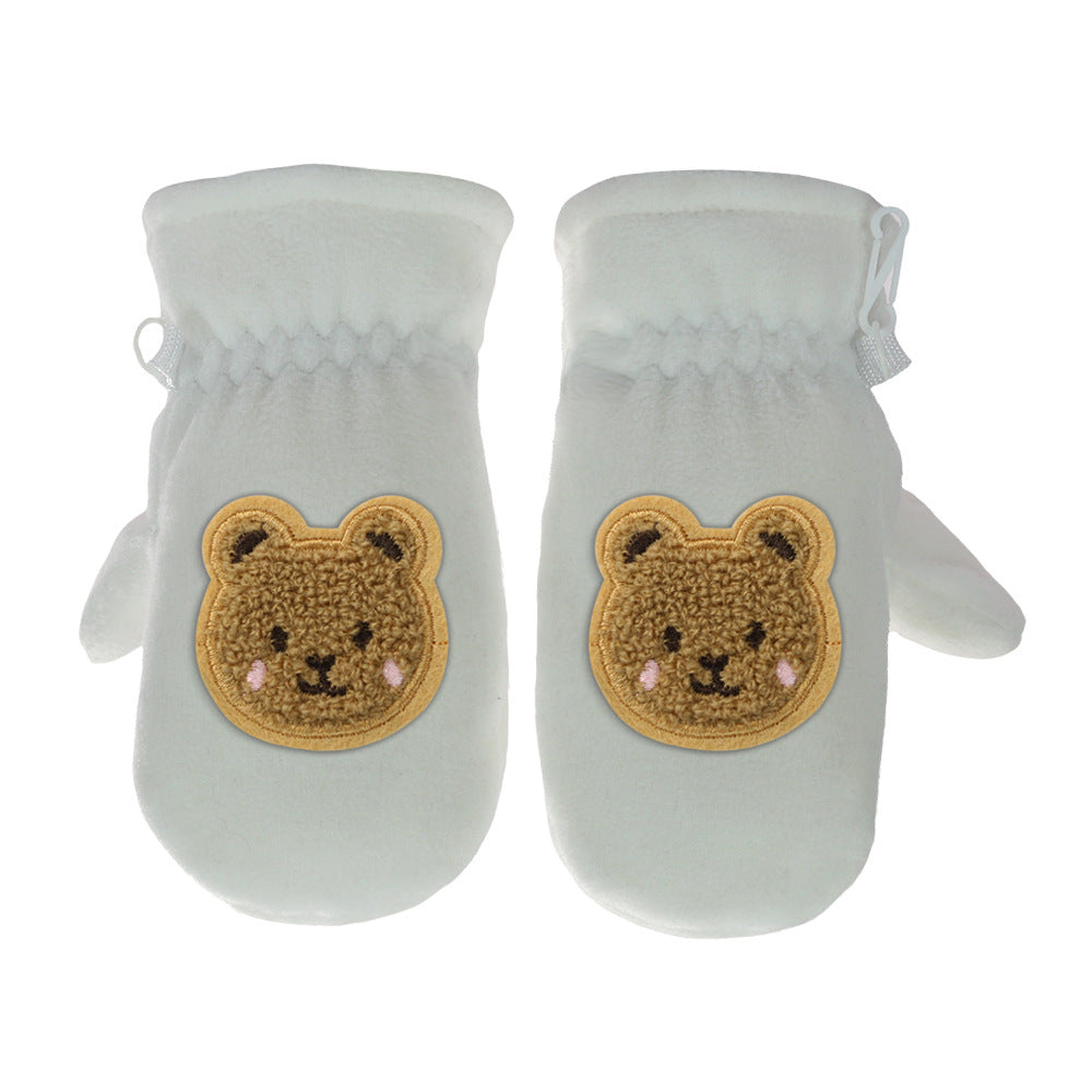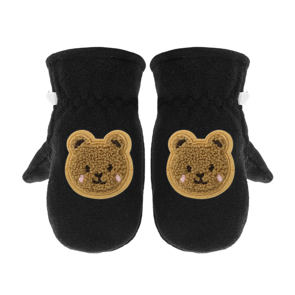 Kids Fleece-Lined Winter Gloves Cartoon Embroidery Thick Gloves