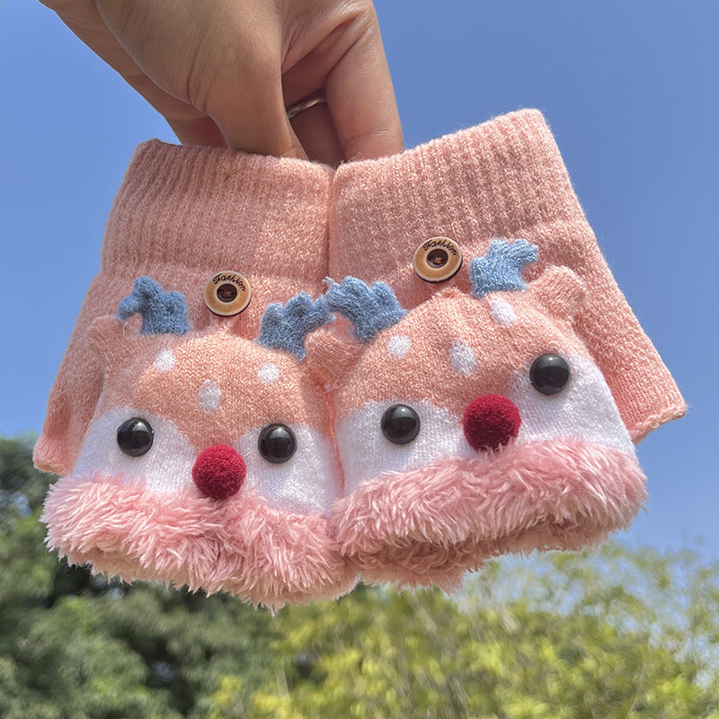 Kids Knitted Christmas Gloves Fleece-Lined Warm Half-Finger