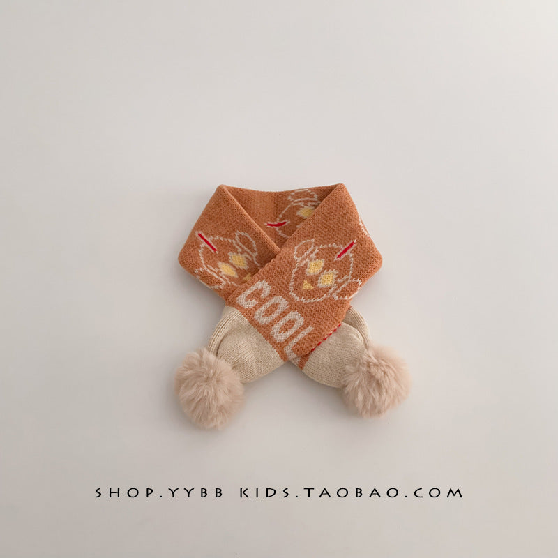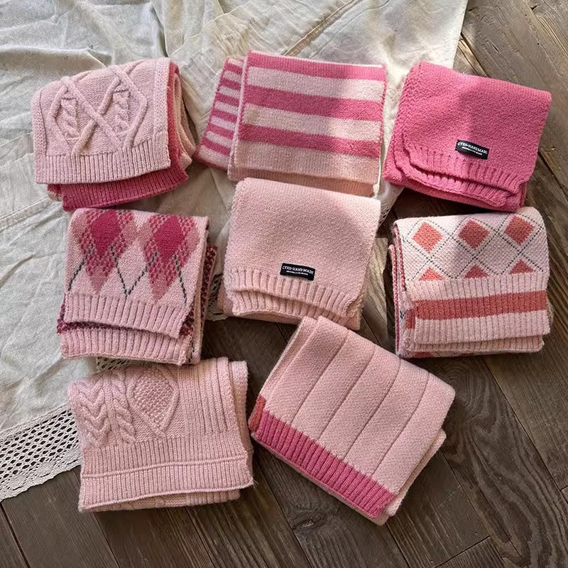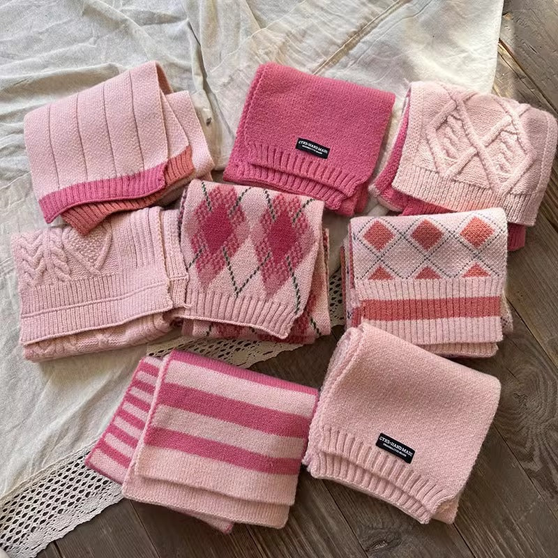 Kids’ Pink Knitted Scarf – Autumn Winter Girls Wool Scarf
