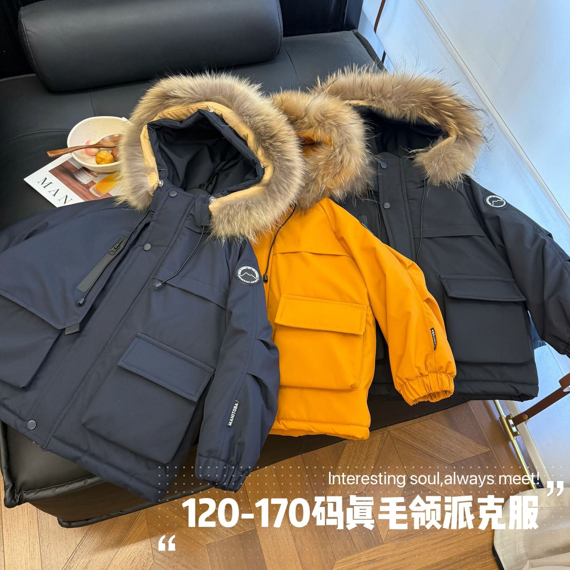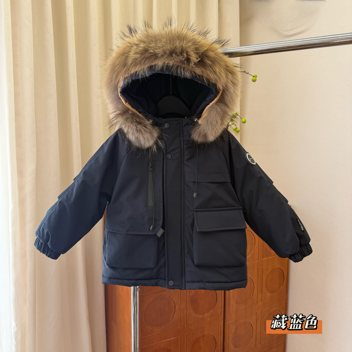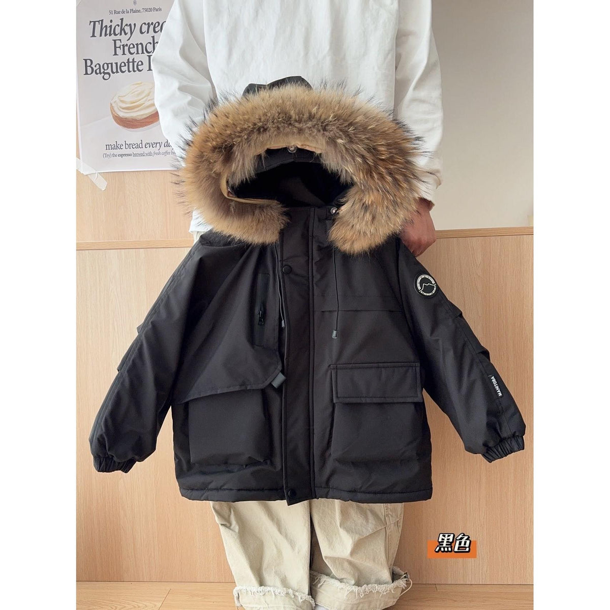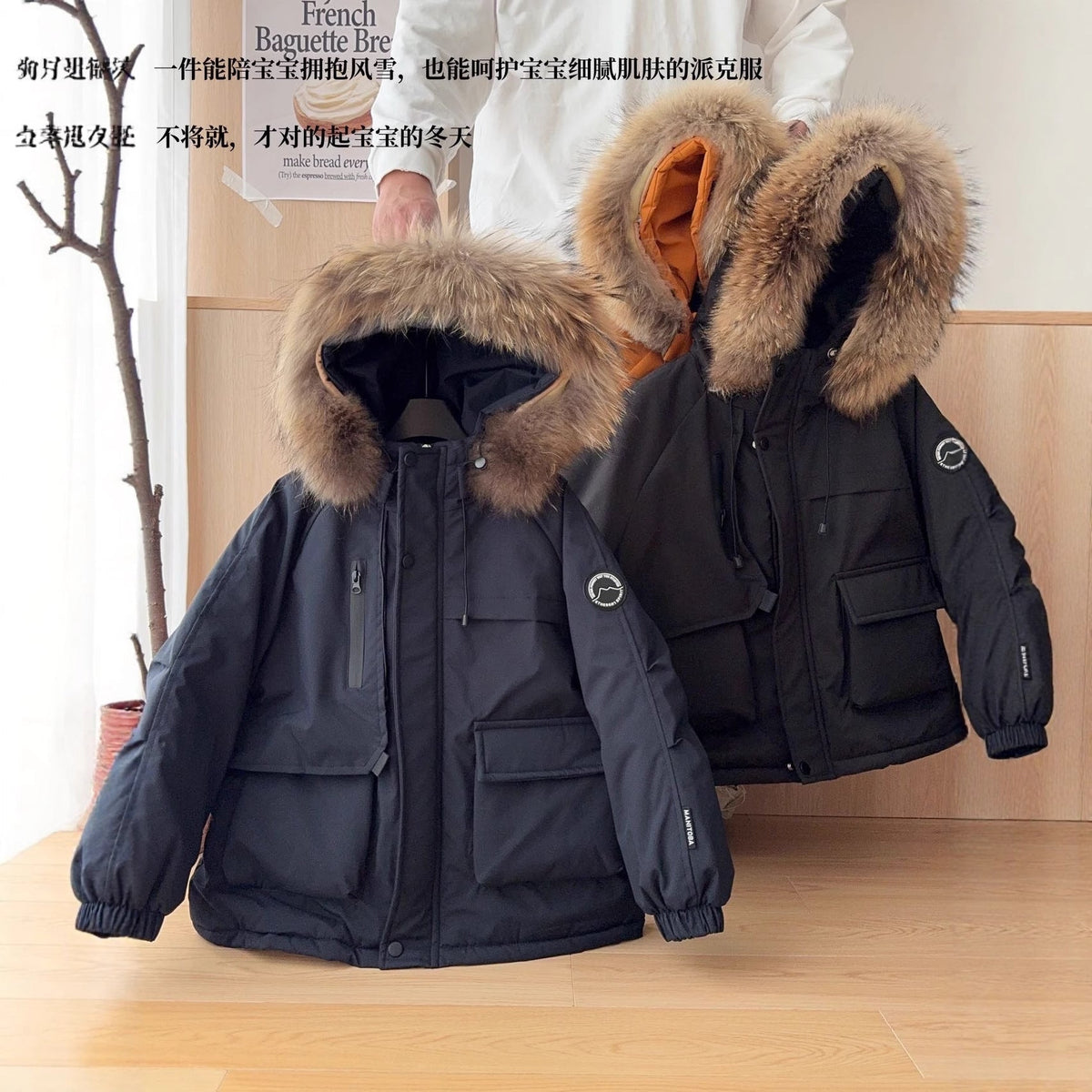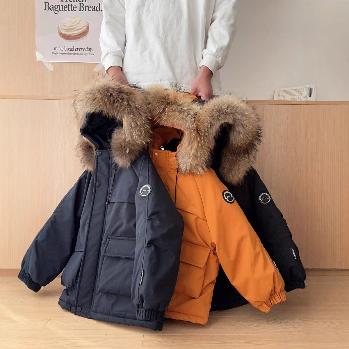 Kids Real Fur Collar Winter Parka Warm Cotton Jacket
