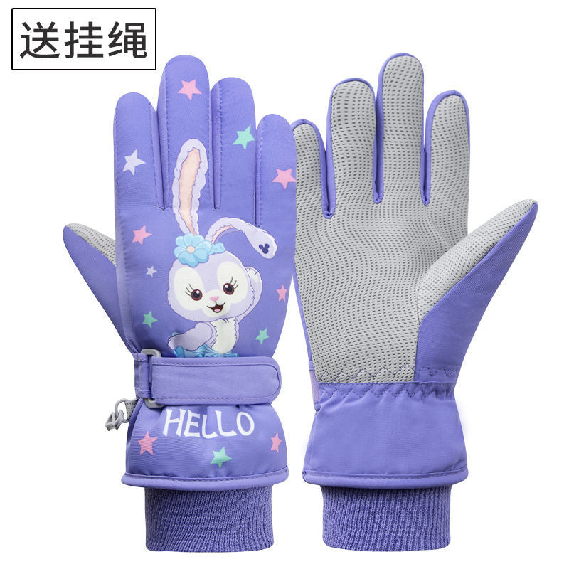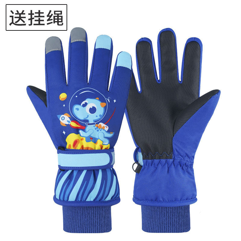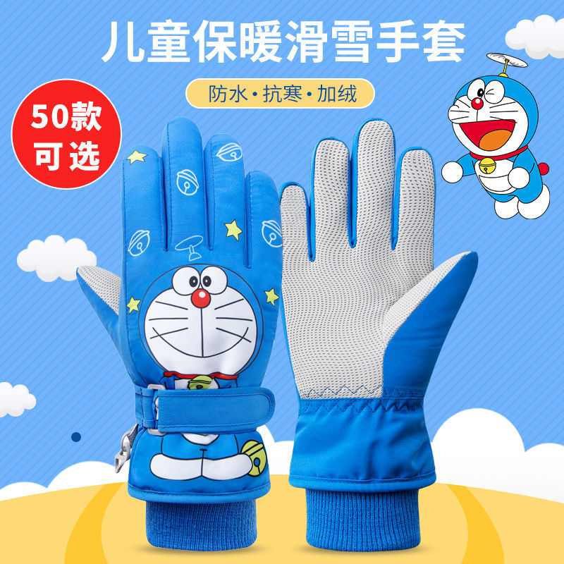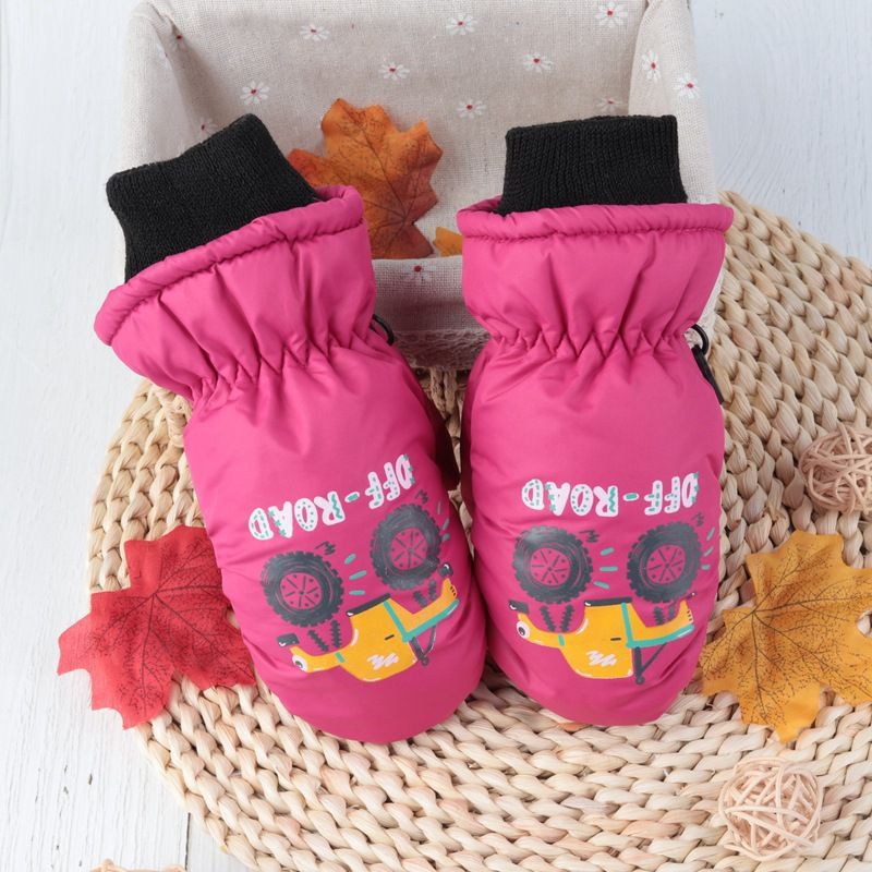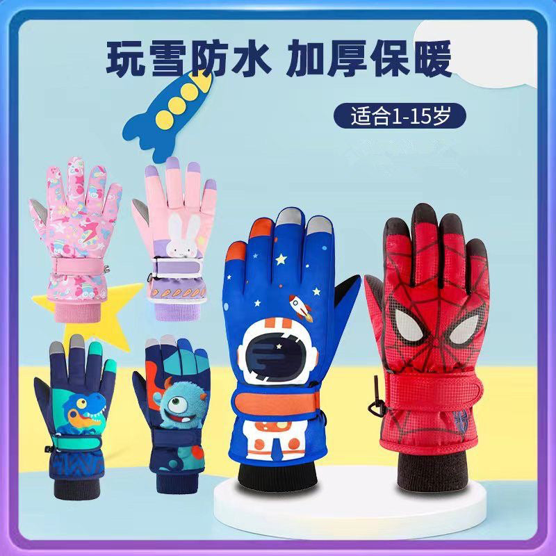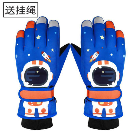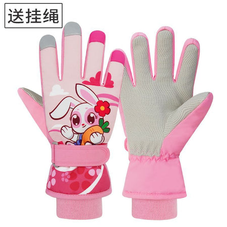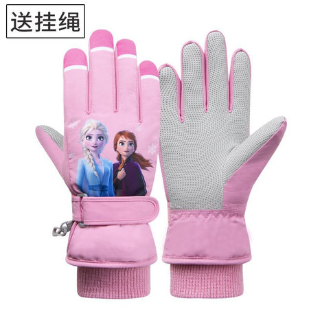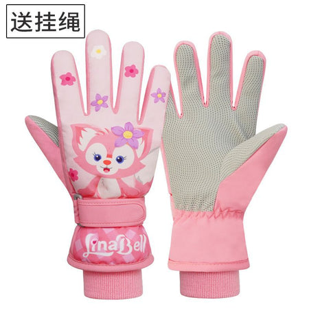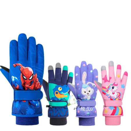 Kids Ski Gloves Waterproof Warm Fleece-Lined Cartoon Gloves