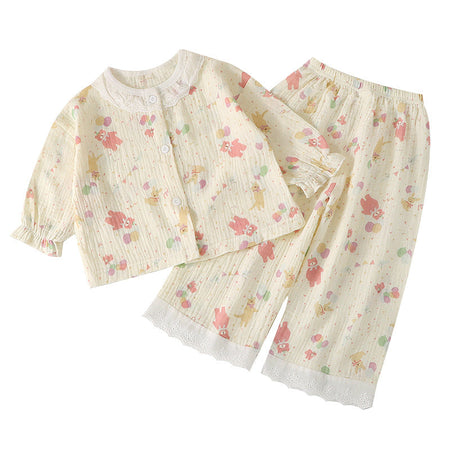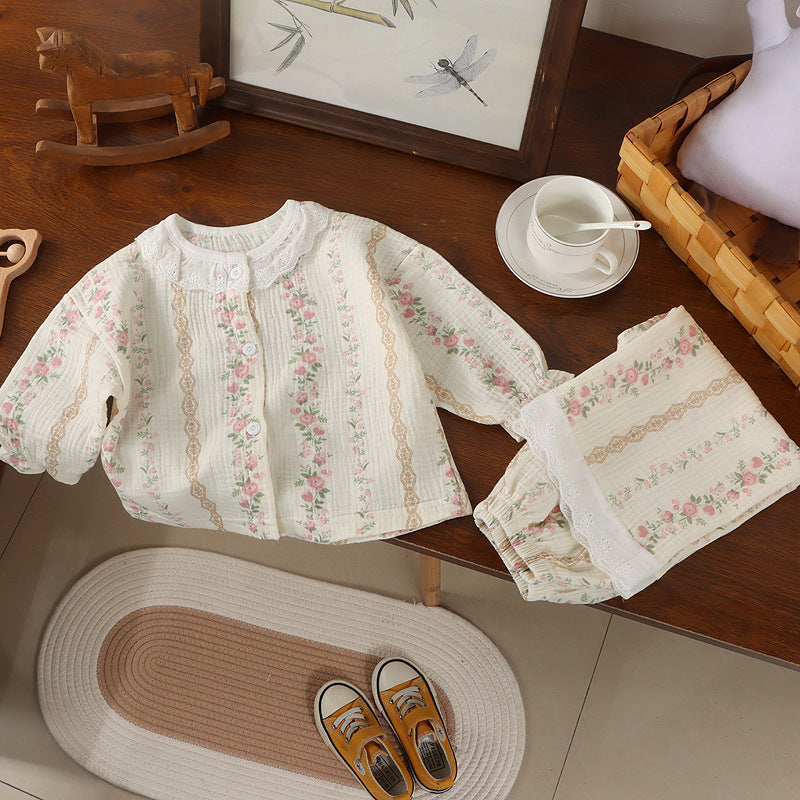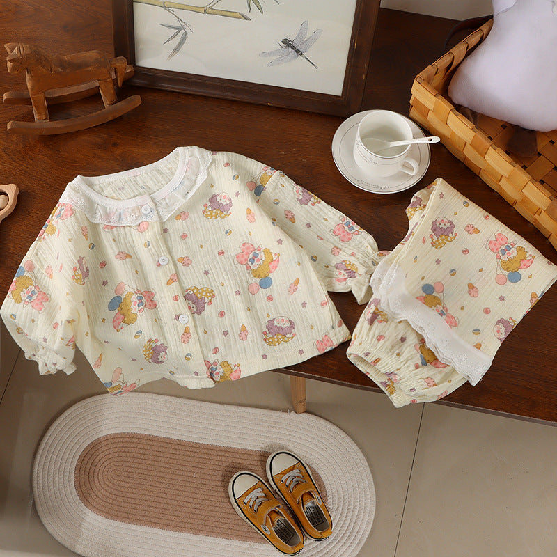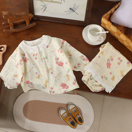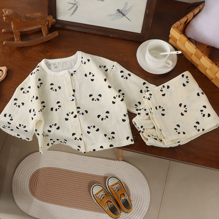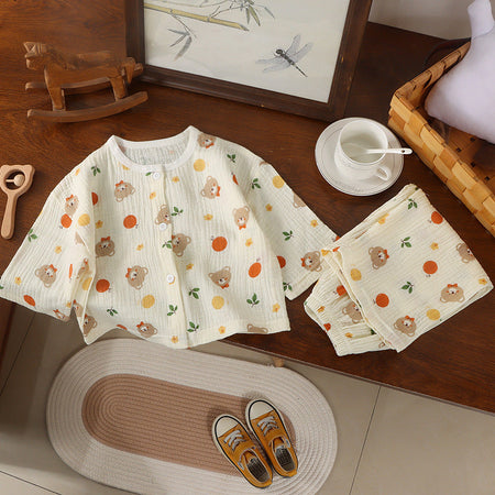 The set includes a short-sleeve top with cropped trousers, designed to balance comfort and breathability while protecting children in air-conditioned rooms ❄️. The lightweight cotton fabric quickly absorbs sweat 💧, keeping your baby dry, fresh, and cozy throughout the night.