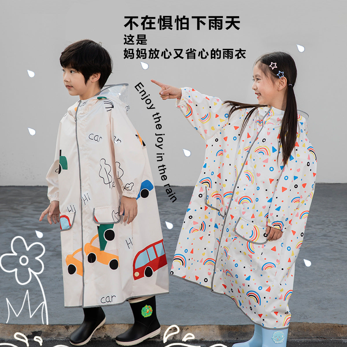 🌧️ Make rainy days hassle-free with this children’s waterproof raincoat—specially designed for boys and girls from kindergarten to primary school. With a built-in schoolbag cover, your child and their books stay dry, clean, and comfy all day long! 🎒🧒👧☔