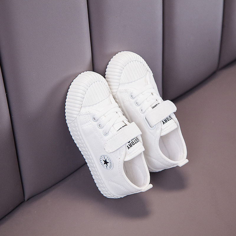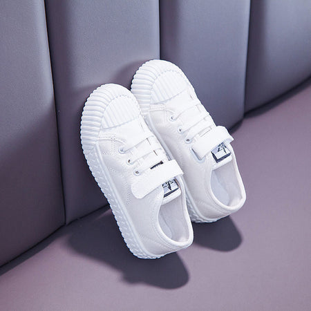 🔍 Keywords: kindergarten white shoes, kids canvas sneakers, indoor dance shoes, boys and girls school shoes, campus performance sneakers, children’s white sneakers