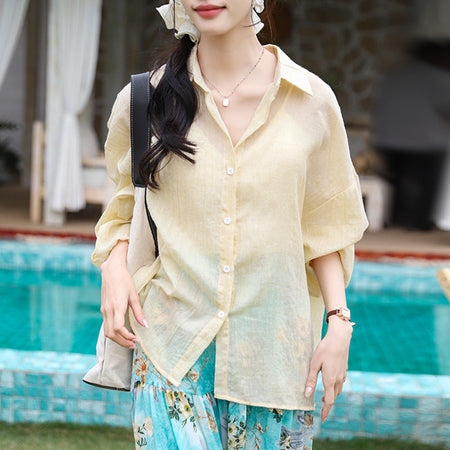 Stay cool and stylish this season with the Kite Fashion Simple All-Match Solid Color Ramie Shirt β the perfect lightweight cardigan for spring and summer! βοΈπ Made from breathable, thin ramie fabric, this shirt offers exceptional comfort while protecting you from the sunβs rays. ππ‘οΈ