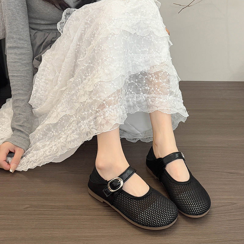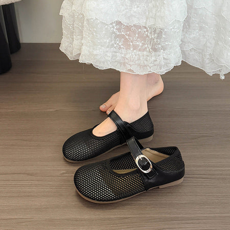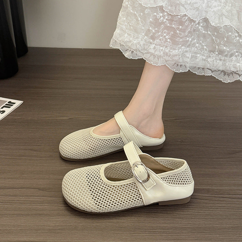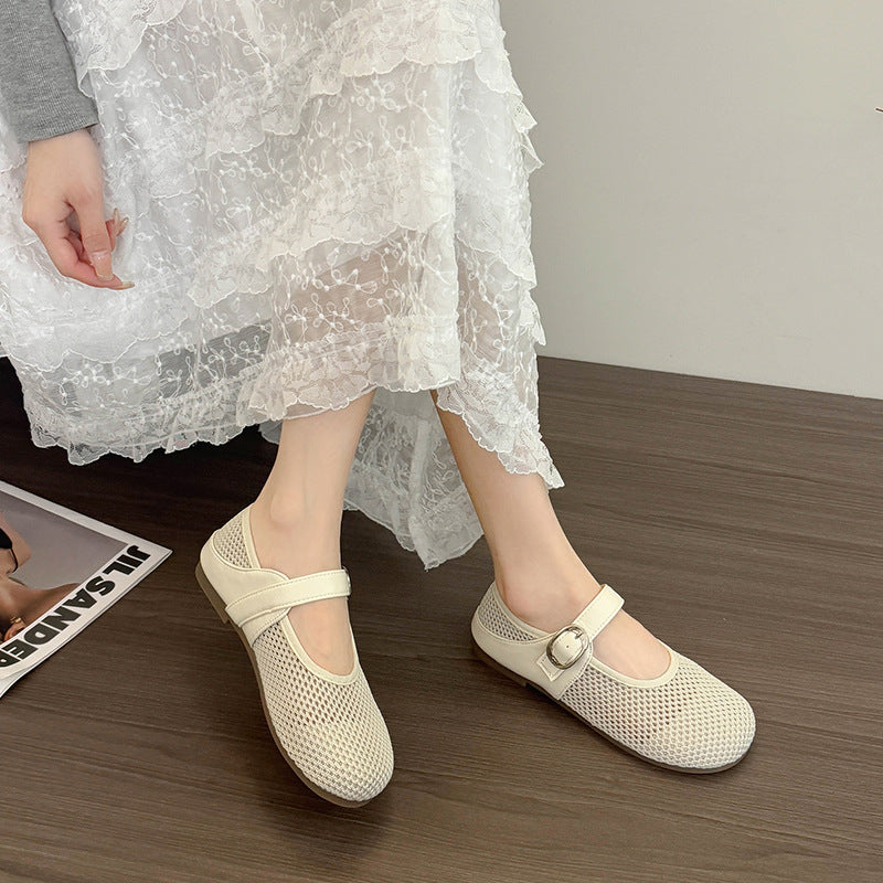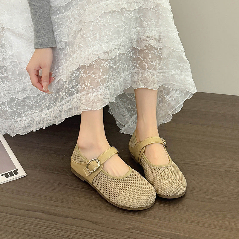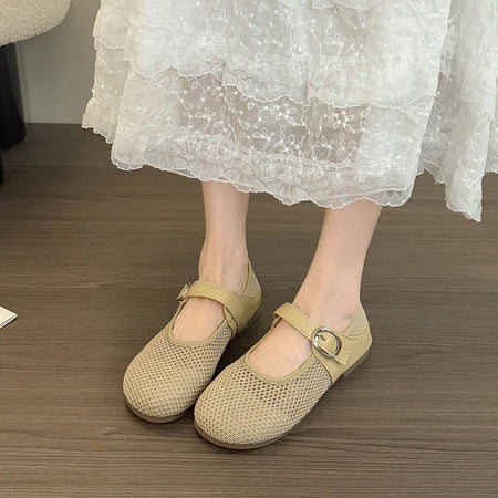 Stay cool and comfortable this summer with these Knitted Mesh Breathable Flat Shoes for Women 🌸☀️. Designed for outer wear, these soft-soled flats offer a perfect mix of casual comfort and airy style. The breathable mesh upper ensures your feet stay fresh even on hot days, while the secure buckle design adds both functionality and charm.
